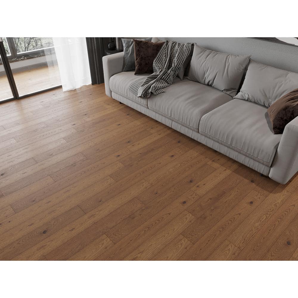 Experience the luxury of hardwood with Acqua Floors' Neah Oak Wire Brushed Engineered Hardwood Flooring. This versatile and durable flooring is waterproof for up to 72 hours and features a click-lock system for easy installation. With a stunning wire-brushed finish, it brings a touch of elegance to any space, backed by a lifetime residential warranty.