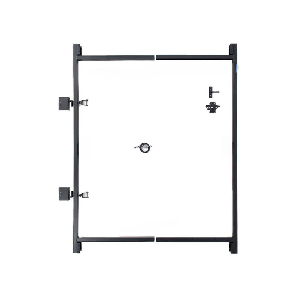 The Adjust-A-Gate Steel Gate Frame Kit is a versatile and robust solution for your gate needs. Designed for easy installation, this system accommodates openings from 36 inches to 72 inches wide, providing a durable and reliable frame for wood or composite fences. Engineered with a powder-coated black finish, it offers long-lasting protection, ensuring a gate that serves you well for years to come.
