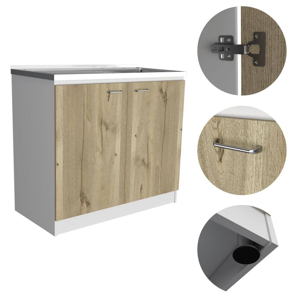 The Adrinfly Freestanding Utility Laundry Sink with Cabinet in Beige is designed to enhance your laundry room, combining functionality with elegance. The spacious sink features a 2-door cabinet providing ample storage for essentials, and its durable construction ensures long-lasting use. Perfect for homeowners aiming to upgrade their laundry space with a touch of style and practicality.