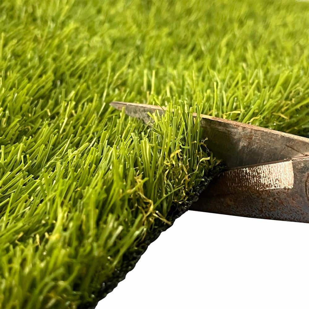 A: No tools required. The artificial grass can easily be cut to your desired size with standard scissors, allowing precise fitting as needed.