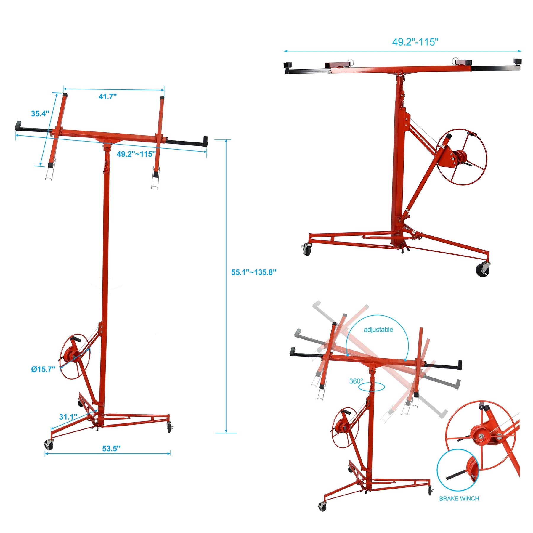Telescopic Arm: Adjustable from 49" to 114", perfect for large drywall sheets.