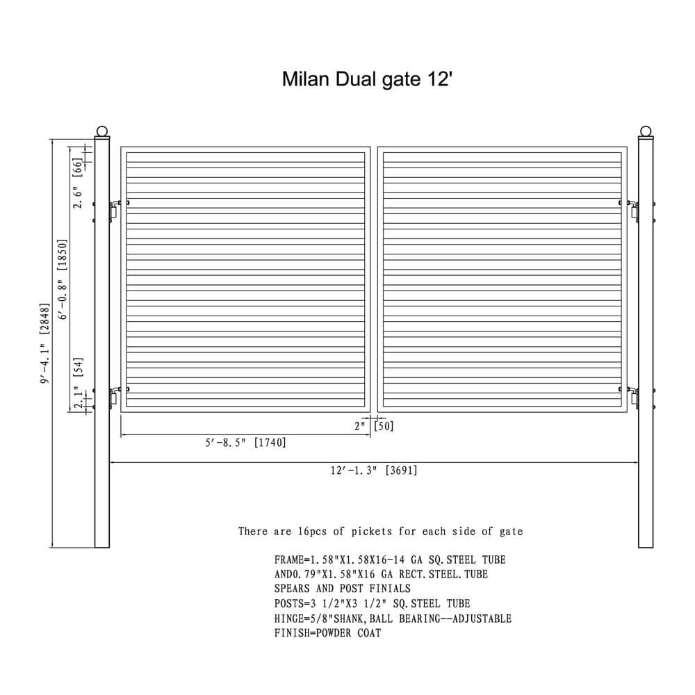 ALEKO 12 ft. x 6 ft. Milan Black Metal Steel Dual Swinging Driveway Fence Gate