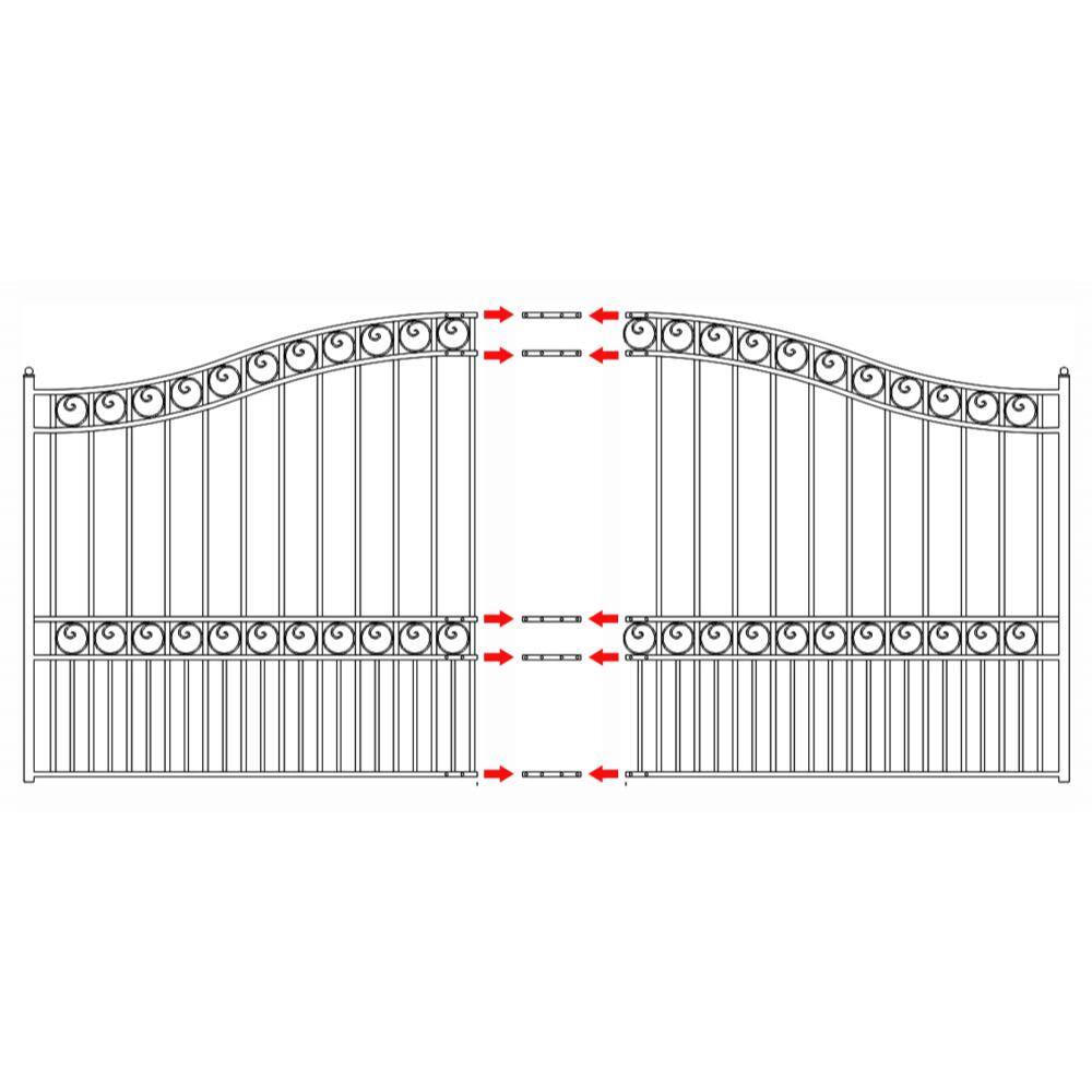 Transform your property's entrance with the ALEKO Paris Style Black Steel Swing Driveway Gate. Crafted from galvanized steel, this elegant gate offers enhanced security and elevated curb appeal while withstanding the test of time. Its matching pedestrian gate provides convenient access without compromising on style or safety.