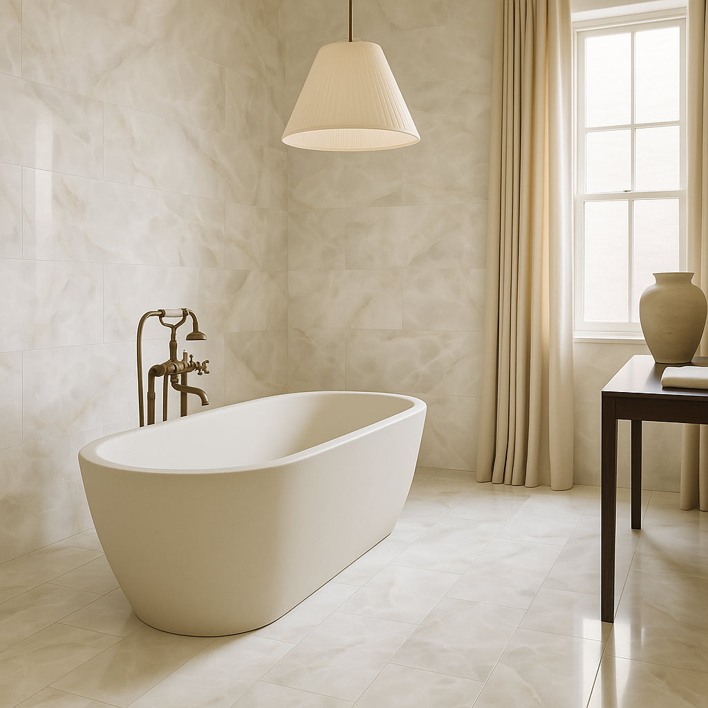 Transform your space with the luxurious Alessia Bianca Polished Porcelain Tile today.