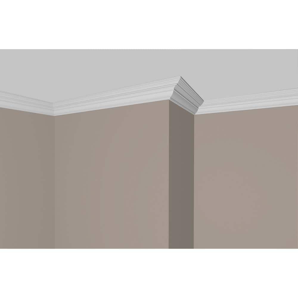 Alexandria Moulding 5/8 in. D x 4-1/2 in. W x 96 in. L Pine Wood Primed White Finger-Joint Crown Moulding Pack (4-Pack)