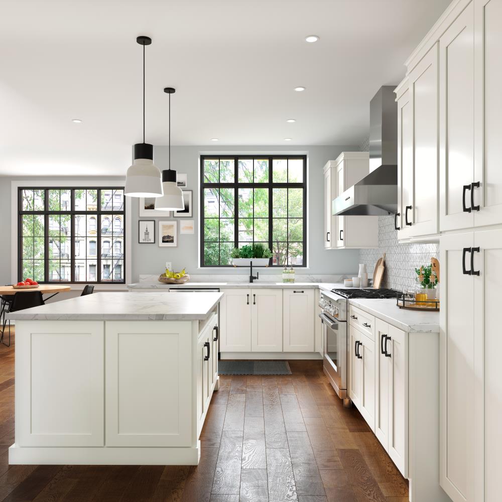 The Allen + Roth Aveley Cabinet transforms your kitchen with its bright linen finish and clean shaker lines, creating an inviting and contemporary space. Its standout feature—a soft-close mechanism—adds luxury and modern whimsy, ensuring a quiet grace in operation. Style this piece as the focal point in a minimalist kitchen design, pair it with bold hardware to infuse personality. Essential for cultivating a high-end culinary atmosphere, this cabinet elegantly enhances both function and style.
