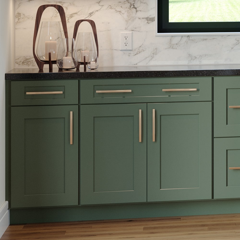 The allen + roth Galway Sage Base Cabinet effortlessly merges form and function, transforming any kitchen or bath into a serene sanctuary. Its versatile sage hue casts a calming influence, while the superior dovetail drawer invites tactile pleasure each time it's opened. Set it against natural woodgrain counters or minimalistic decor for a classic yet contemporary appeal. With its impeccable engineering and timeless design, this cabinet symbolizes the pinnacle of modern luxury, creating a refined and harmonious living space.