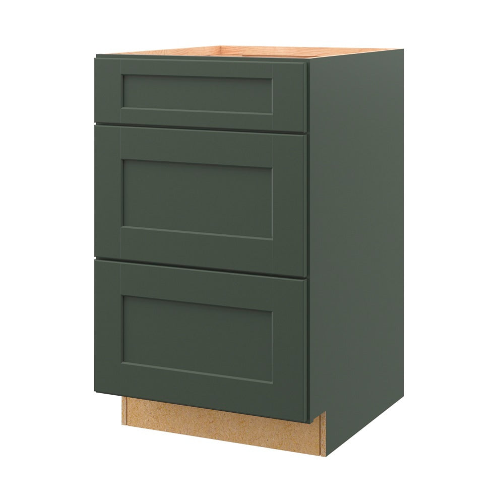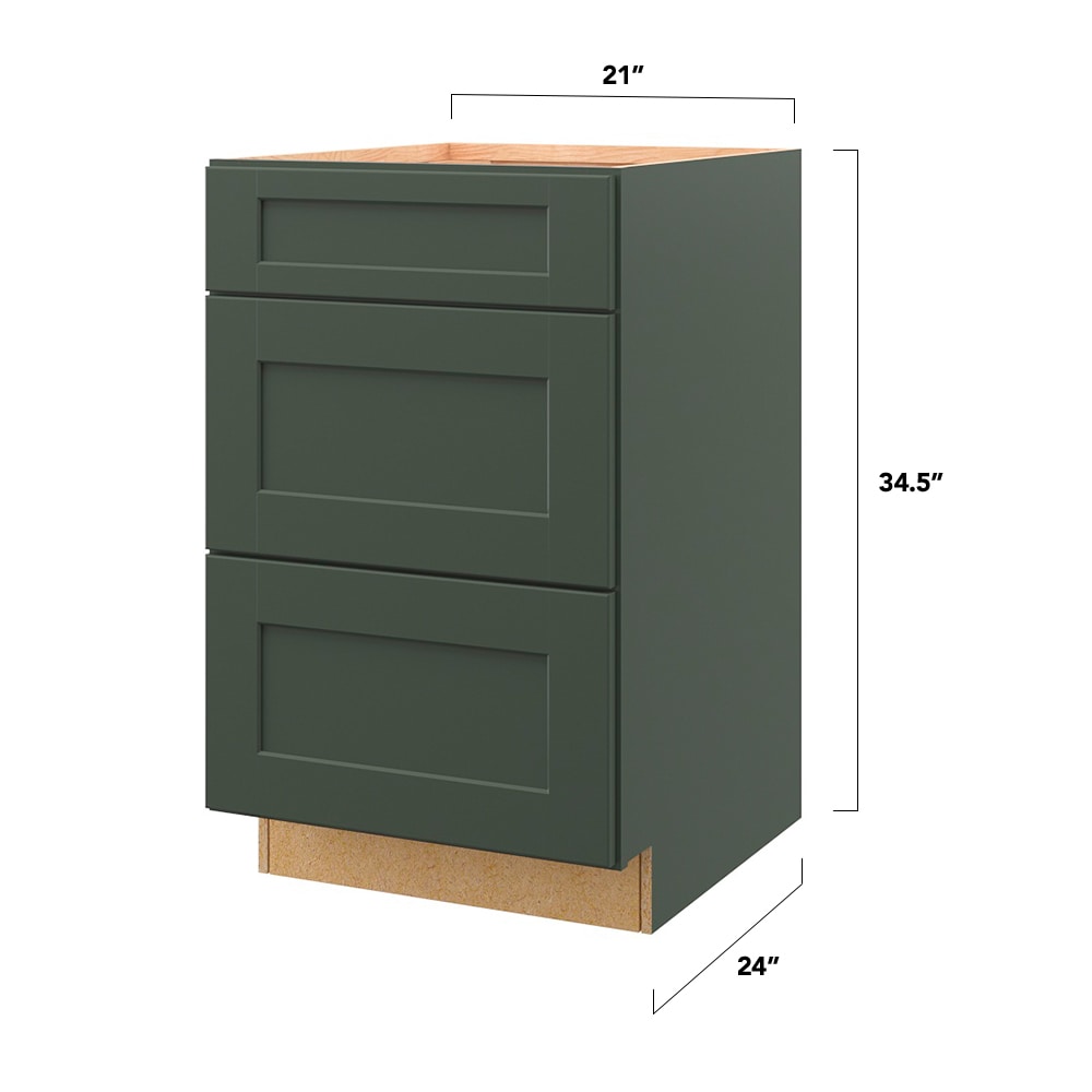 The allen + roth Galway 3-Drawer Base Cabinet delivers sleek functionality with a touch of rustic charm. Featuring a calming sage finish, this fully assembled cabinet provides ample storage with its three drawers, ensuring a modern and seamless look for any kitchen or workspace. Durable construction and a soft-close mechanism enhance both usability and longevity.
