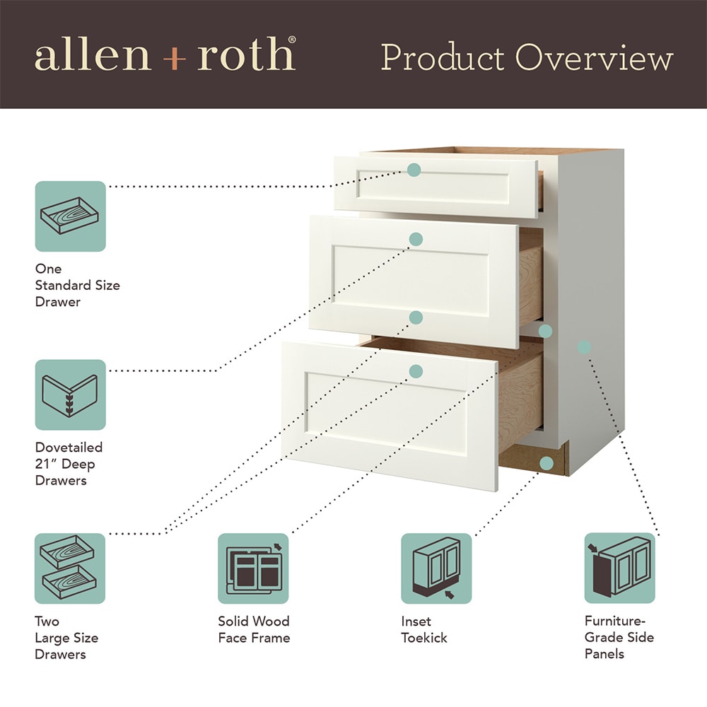 Enhance your home with the allen + roth Sage 3-Drawer Base Cabinet today and blend style with superior functionality.