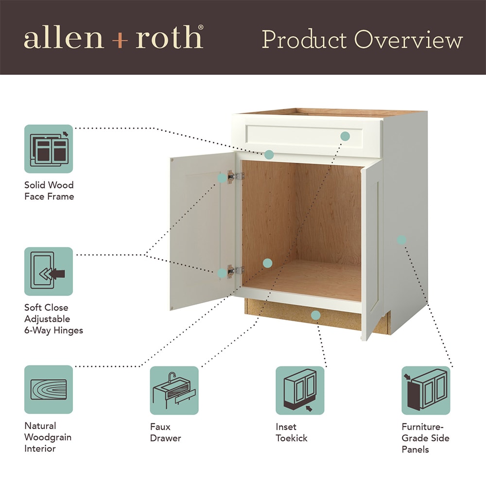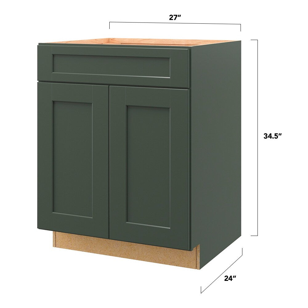 Transform your space with the allen + roth Galway Sink Base Cabinet, beautifully crafted in a serene sage finish. This fully assembled cabinet combines classic shaker-style design with modern functionality, featuring soft-close doors for a seamless and quiet user experience.