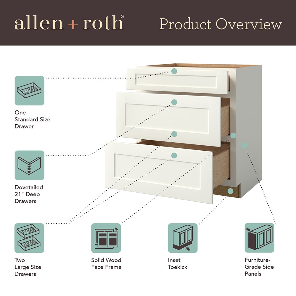 Transform your home's functionality and aesthetic with the allen + roth Galway 3-Drawer Base Cabinet—your stylishly dependable storage solution.