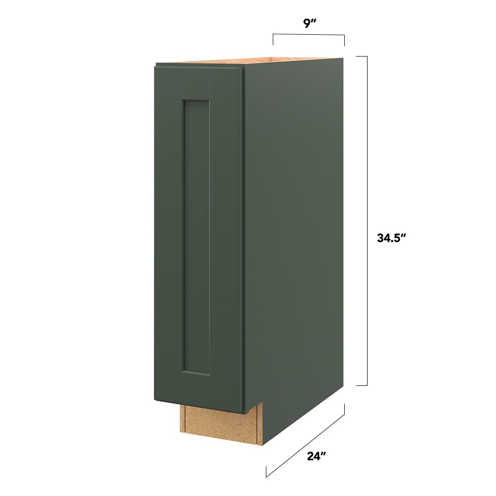 The allen + roth Galway Sage Pull-out Tray Divider Base Cabinet is a transformative piece that infuses any kitchen with a touch of modern serenity. Enveloped in a rich, dark green hue, it offers a nature-inspired elegance that stands out beautifully in contemporary spaces. The standout flat panel doors create a seamless, sleek aesthetic that pairs effortlessly with natural stone countertops for a sophisticated finish. Embrace its minimalist charm as an essential pivot around which any luxurious kitchen pivots, combining both artful design and practical function.