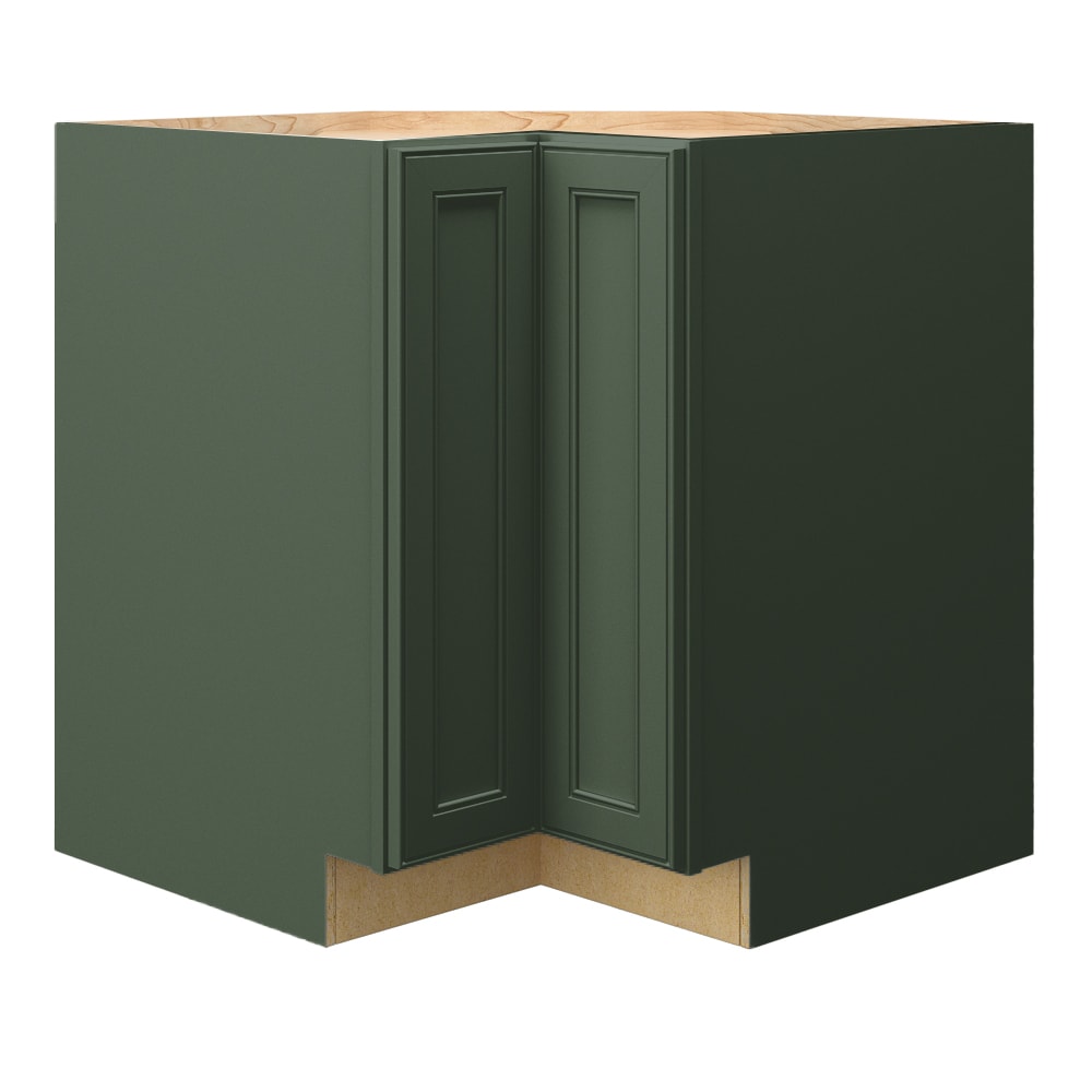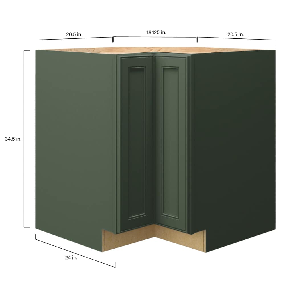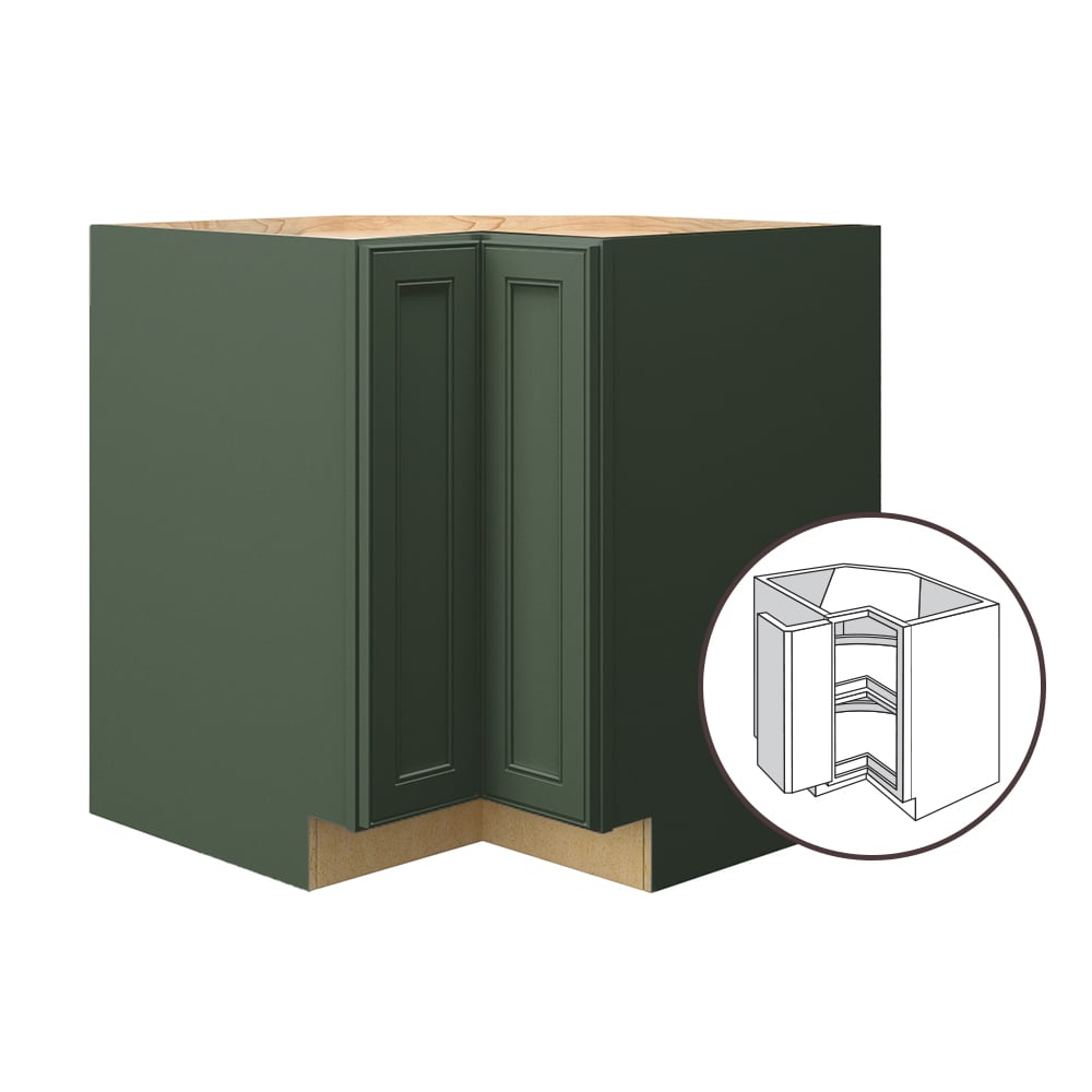 Optimize your kitchen space with the allen + roth Heathrow Sage Lazy Susan Corner Base Cabinet. Combining style with function, its recessed panel mitered design and sage finish complement any kitchen. Fully assembled for easy installation, it provides modern, hassle-free organization in an instant.