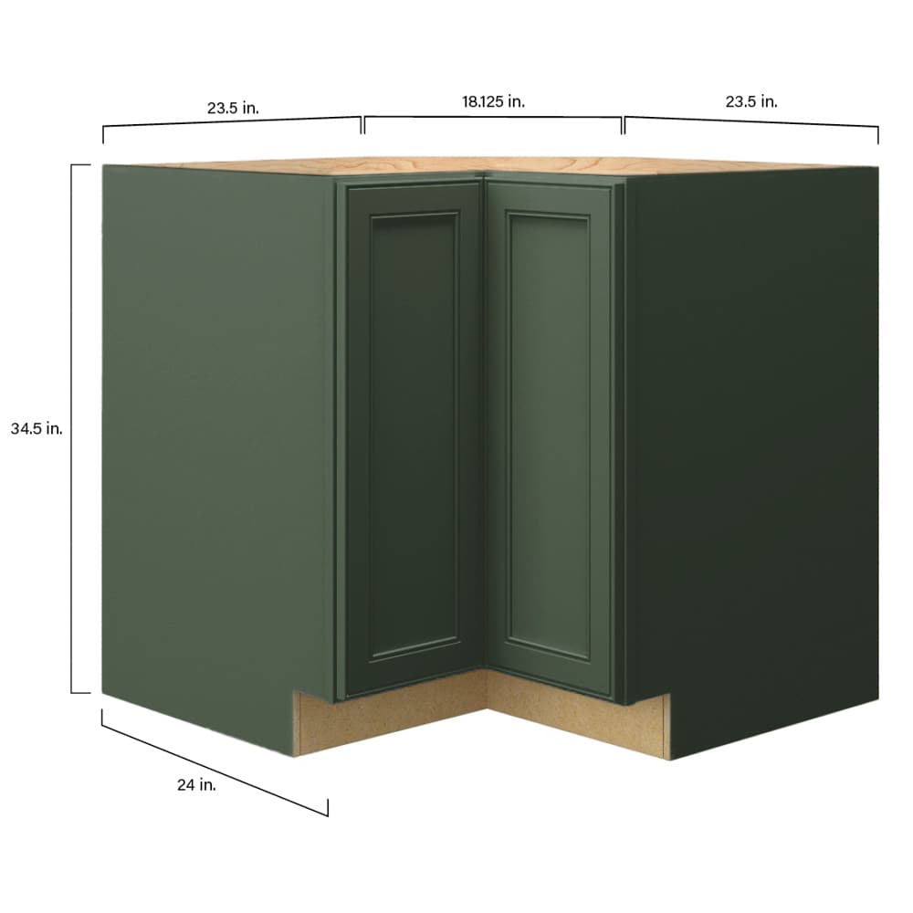 The Heathrow Sage L-shaped Corner Base Cabinet offers a perfect blend of durability and modern design for your kitchen or workspace. Crafted with hardwoods and engineered materials, it ensures structural integrity with a seamless full overlay design that exudes elegance.