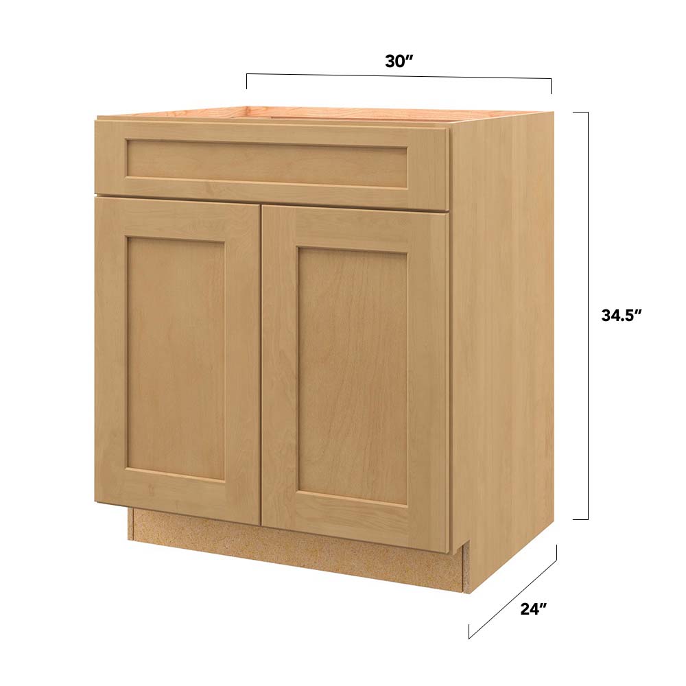 Transform your kitchen with the Innsbrook 30-inch Sink Base Cabinet by allen + roth. This beautifully crafted cabinet offers a blend of traditional Shaker style and modern functionality, featuring a warm rye finish and soft-close doors. Built for durability with double-doweled construction, it ensures both style and strength in your home.
