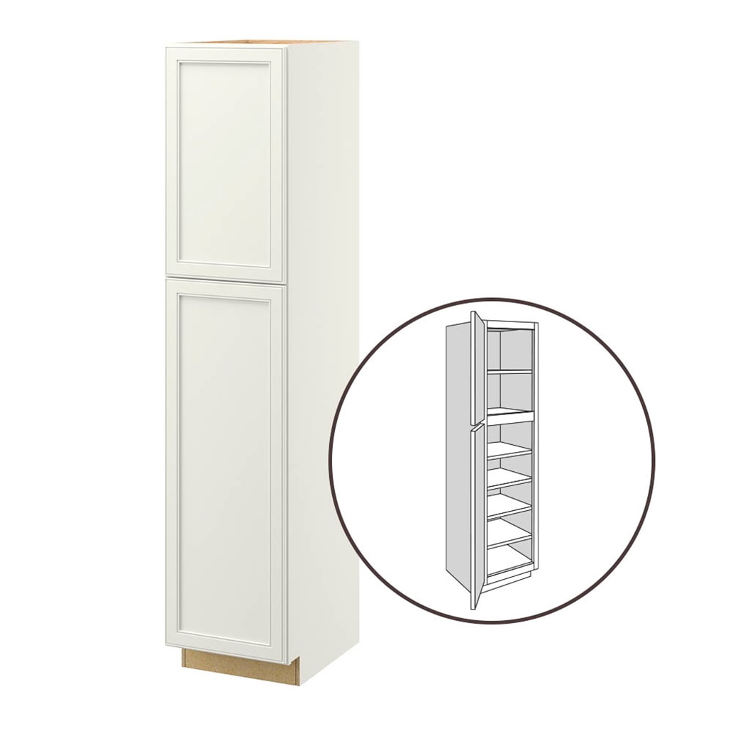 Upgrade your kitchen storage with the elegant McKeller Linen Pantry Cabinet. Featuring a chic flat panel mitered door style, this fully assembled cabinet blends durability with contemporary aesthetics. With soft-close technology and adjustable shelves, it's both a practical and stylish choice for your home.