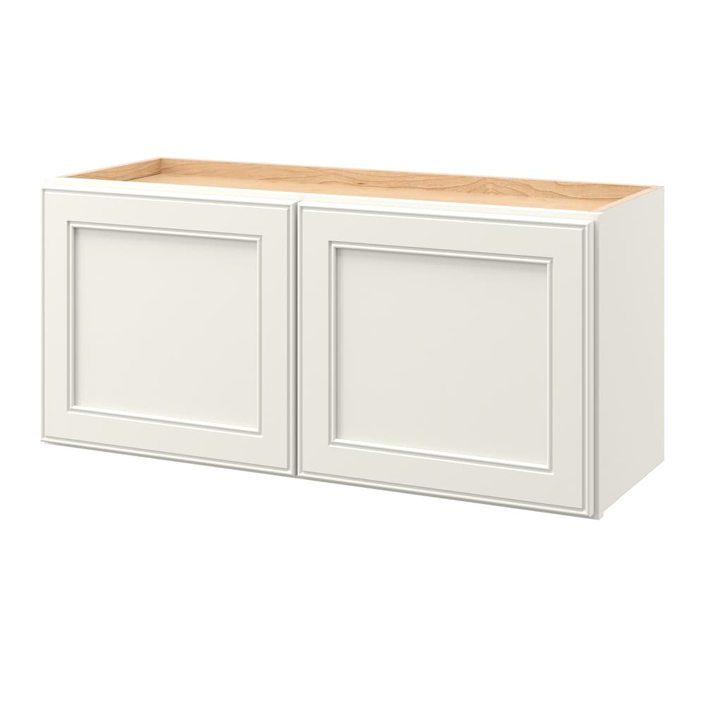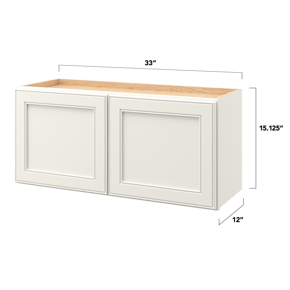 The allen + roth McKeller Wall Cabinet combines refined elegance with robust functionality, making it a standout choice for any modern kitchen. This fully assembled cabinet features a transitional flat-panel mitered door and is crafted with a durable, painted finish that blends hardwoods and engineered materials. Experience the ease of soft-close technology and the structural integrity of expertly crafted cabinetry.