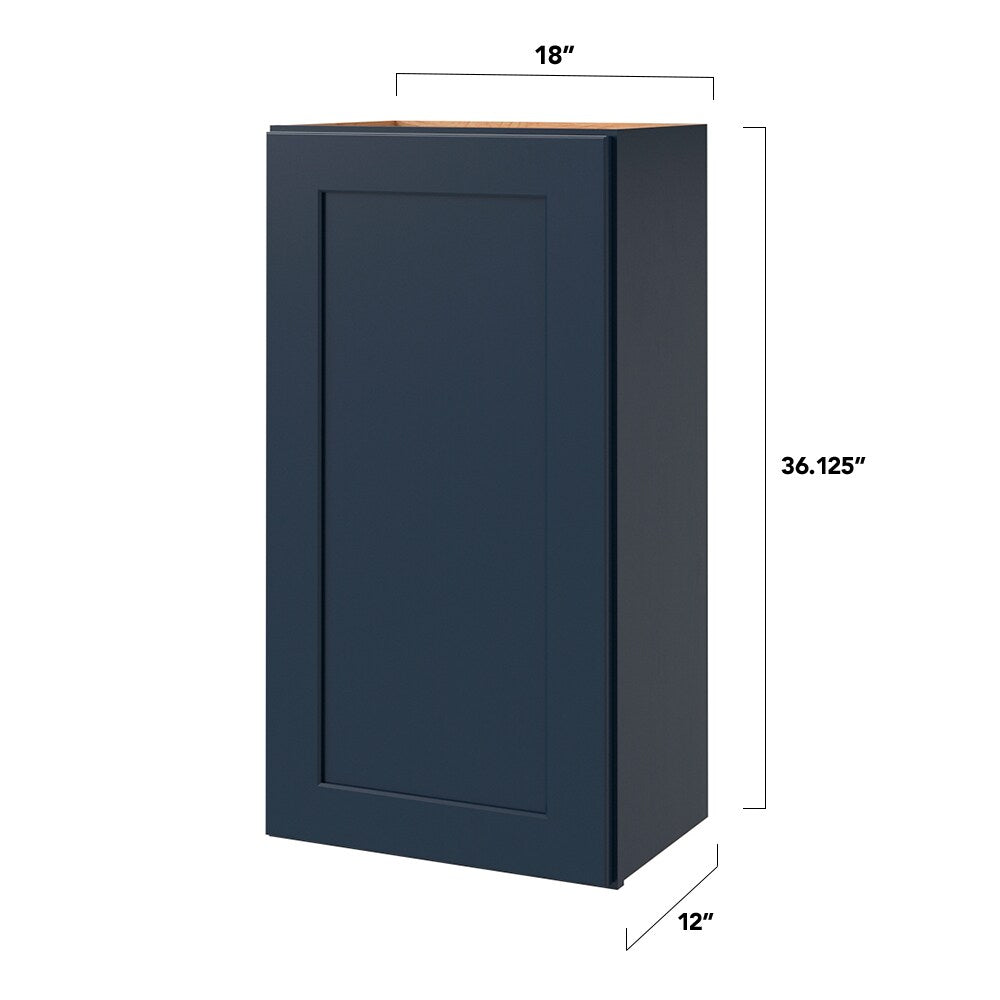 Transform your space with the allen + roth Navy Shaker Wall Cabinet, expertly designed to blend elegant style with outstanding functionality. This fully assembled cabinet features a classic flat panel Shaker design, pairing navy finish with superior craftsmanship for a modern yet timeless look. Ideal for kitchens or bathrooms, it's the perfect addition for those looking to upgrade their home's style and storage efficiency.