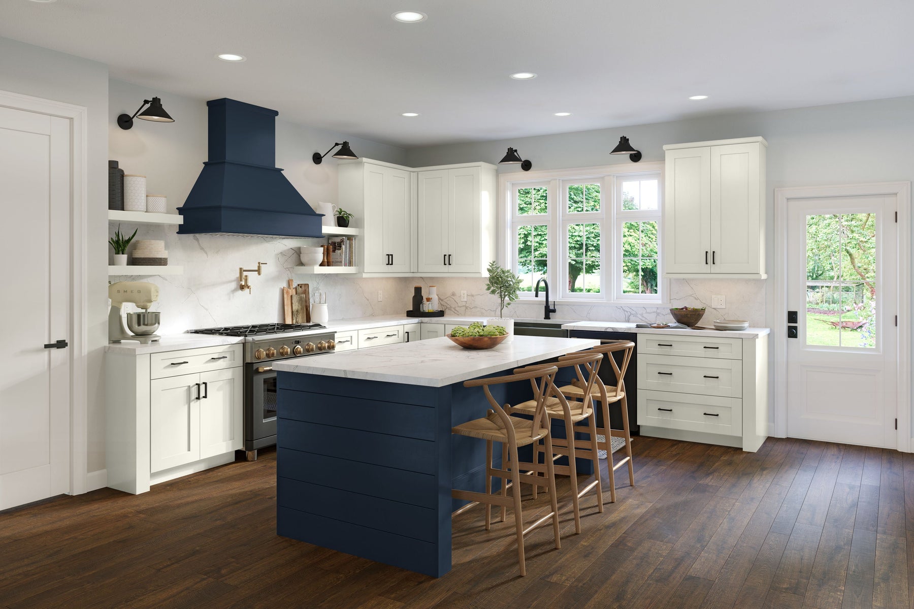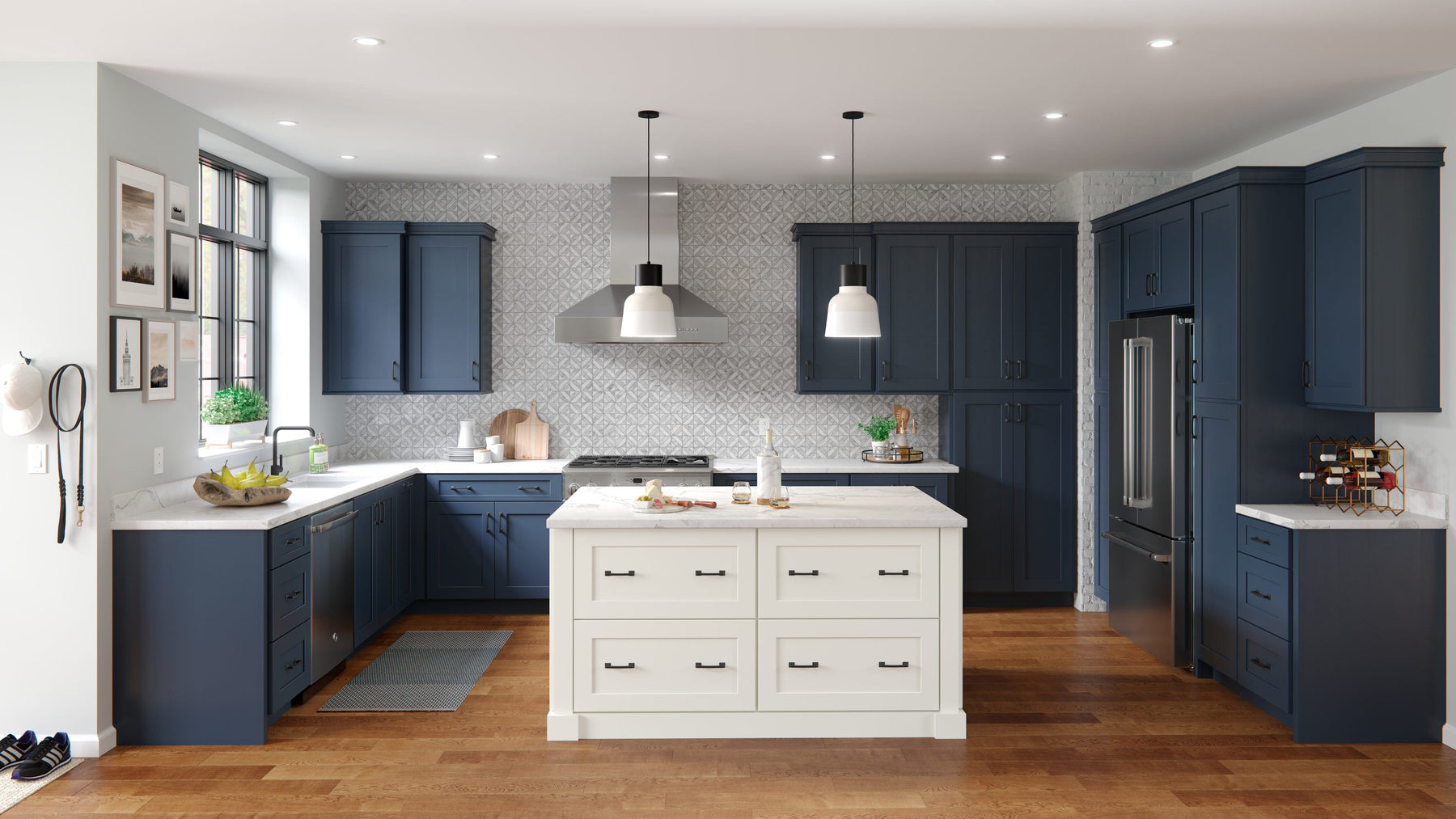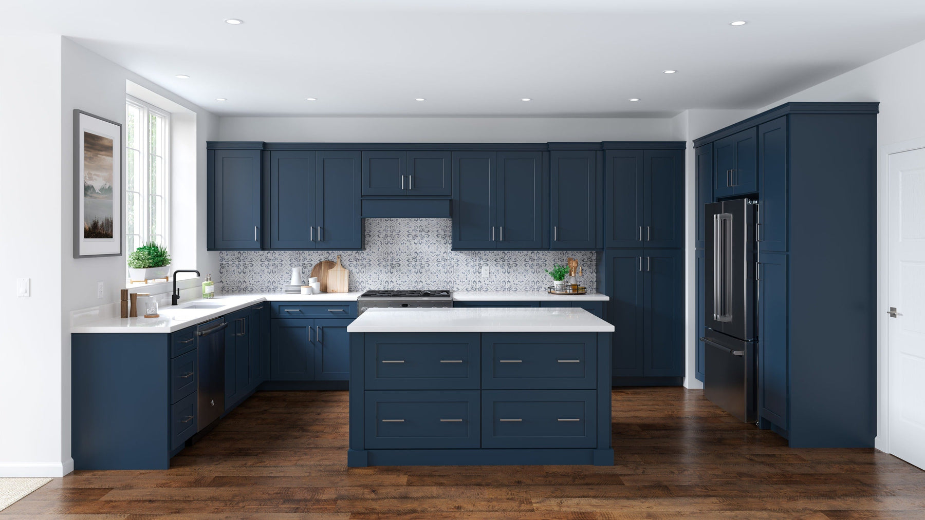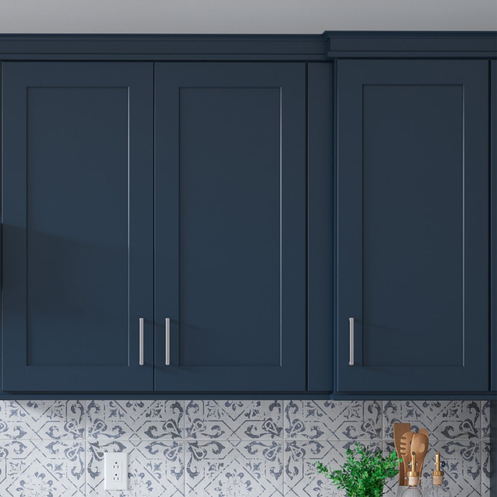Elevate your interior with the Navy Shaker Wall Cabinet from allen + roth. Its deep blue hue adds a sophisticated touch that enhances any decor, be it modern or traditional. The full-overlay design and flat-panel doors create a seamless, elegant facade that's perfect for curating a chic, organized space. Pair it with crisp white backsplash and metallic fixtures for a striking look, making it an essential piece for a refined lifestyle.