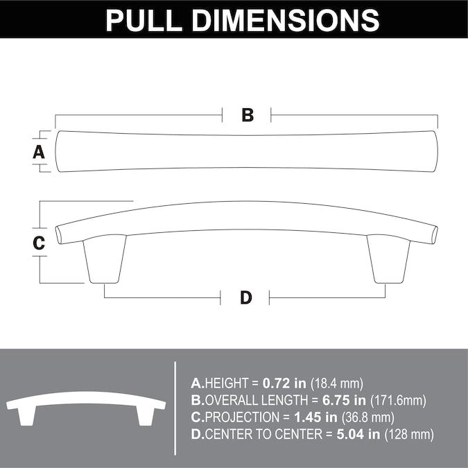 • Design: Contemporary arch pull shape enhances any cabinetry