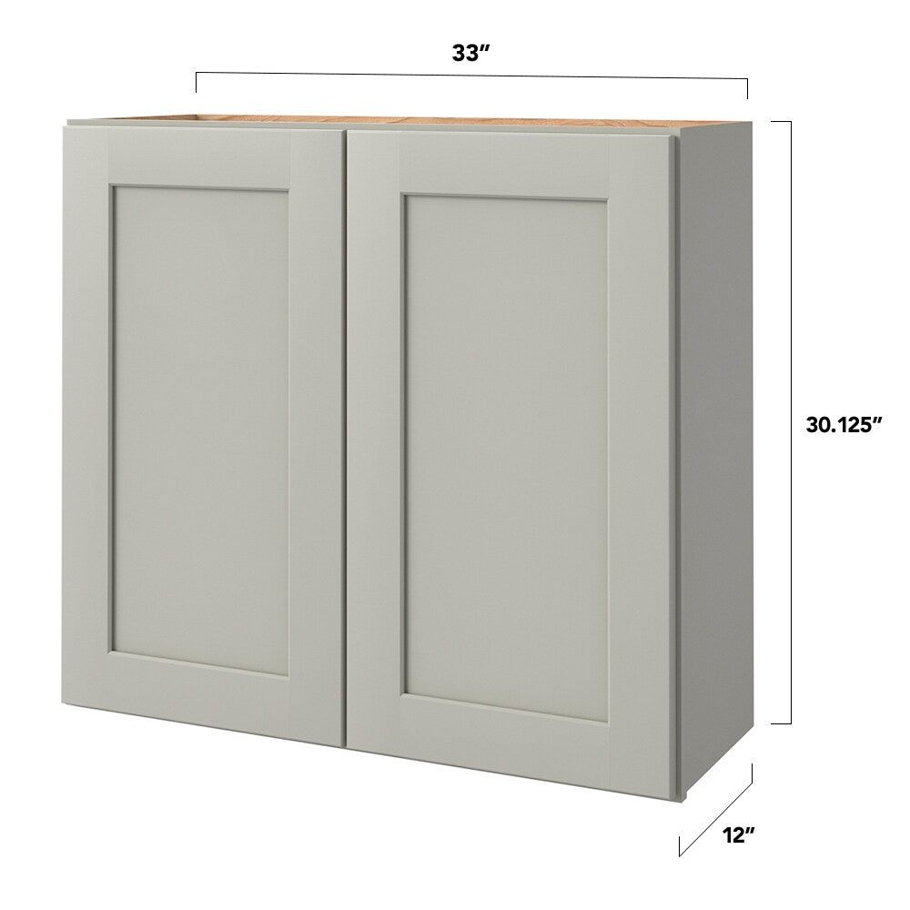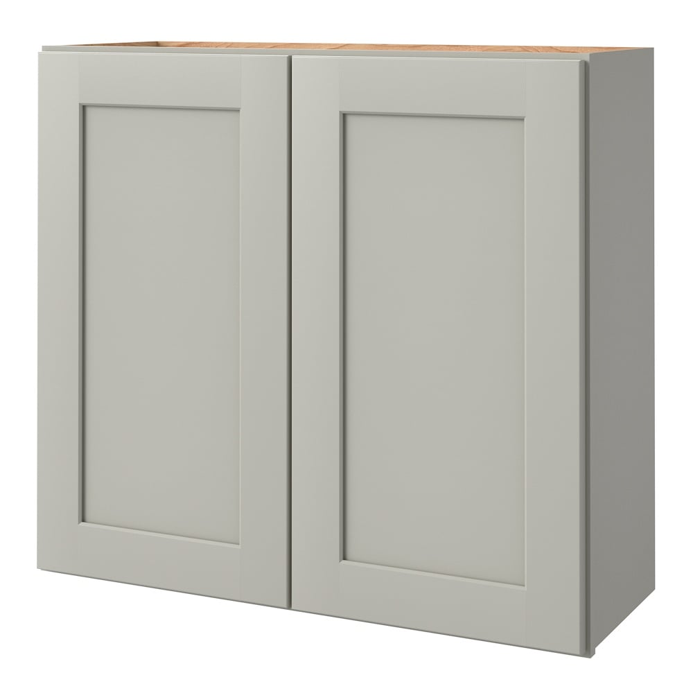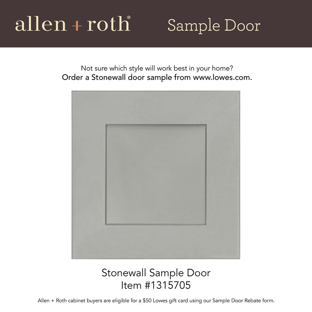 Elevate your kitchen or bathroom design with the allen + roth Stonewall Wall Cabinet, featuring a sleek Shaker-style flat panel. Expertly crafted for durability, its soft-close doors and rich painted finish ensure both beauty and practicality.