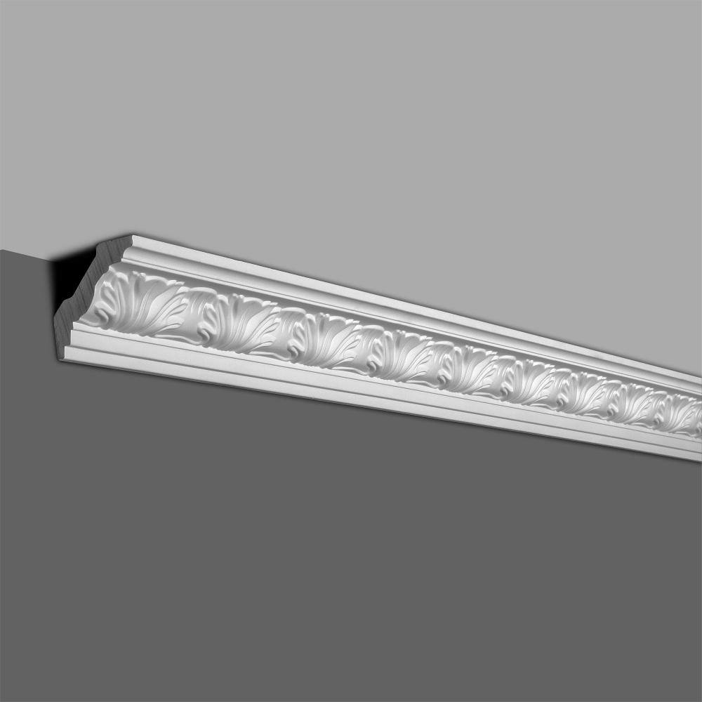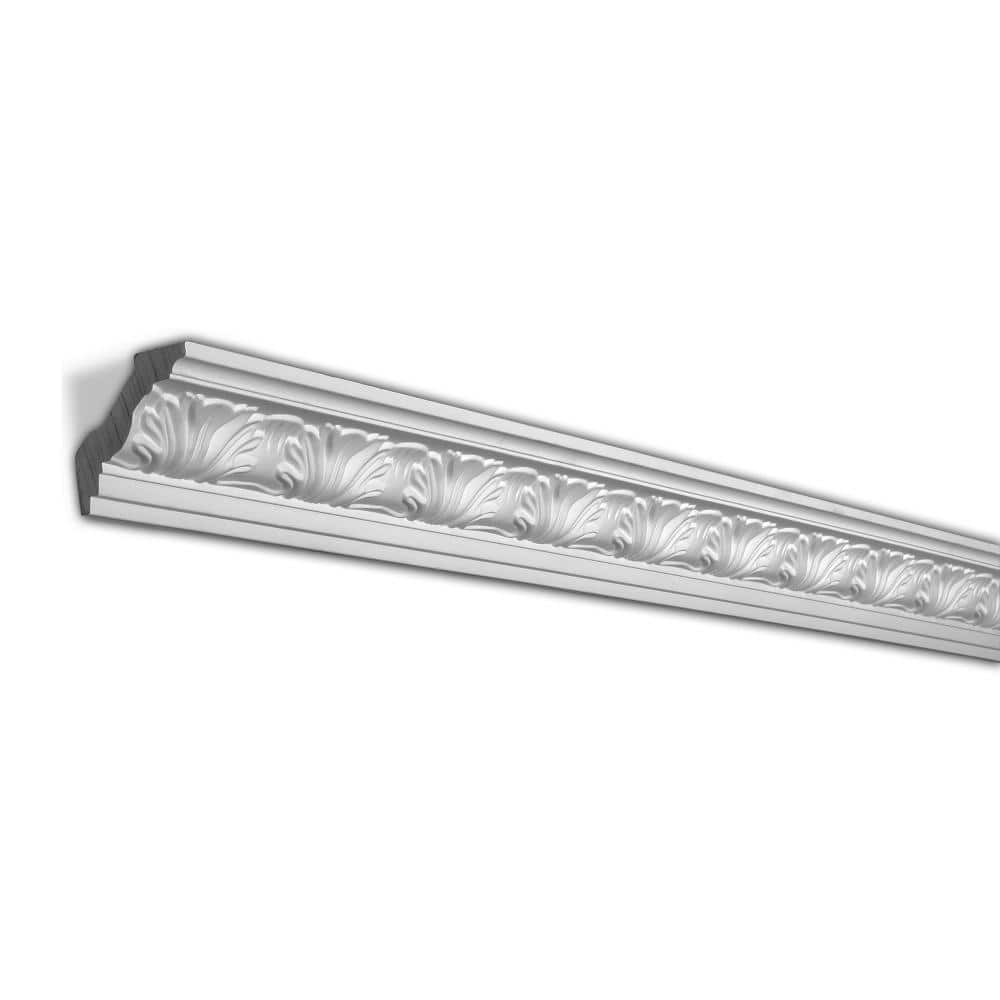 Transform your home into a statement of sophistication with this exquisite Leaf Design Crown Moulding. Its delicate leaf pattern speaks volumes of grace, casting striking shadows that capture the light beautifully. Imagine it adorning your ceiling, providing a finished look to a dining room or living area. Pair it with lush curtains and vintage sconces to complete a lavish setting, marking your home as a masterpiece of style.