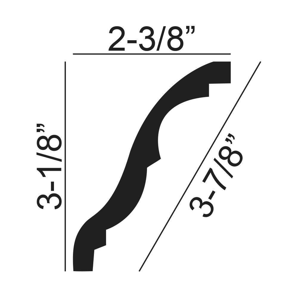 American Pro Decor 2-3/8 in. x 3-1/8 in. x 96 in. Plain Polyurethane Crown Moulding 48 LF (6-Pack)