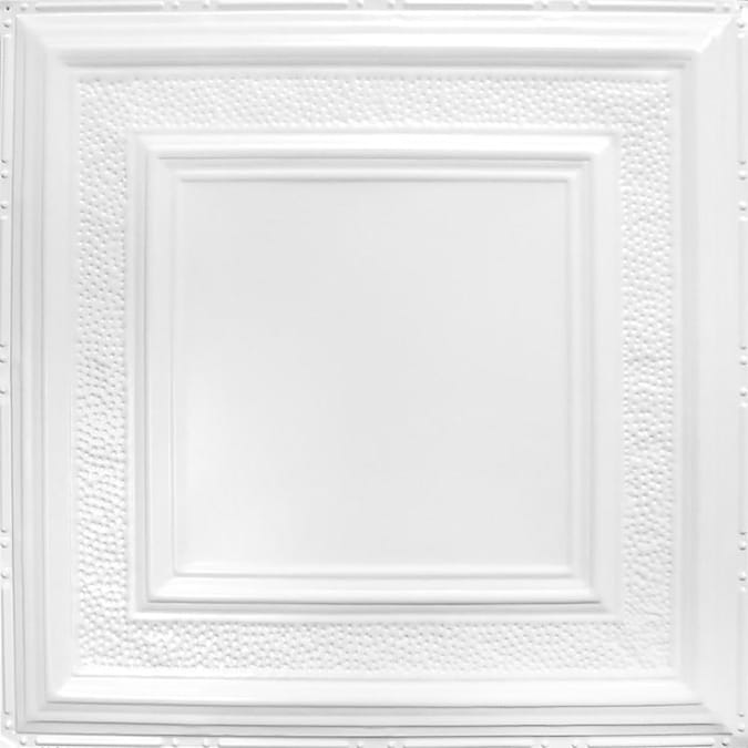 Transform your ceilings with the 2-ft x 2-ft Bright White Satin Ceiling Tiles, crafted from authentic tin plated steel. These rust-resistant, decorative tiles offer not only superior durability but also simple elegance for any commercial or residential space. Ideal for DIY projects, they are designed for easy nail-up installation and provide a sophisticated touch with their large concentric square inset design.