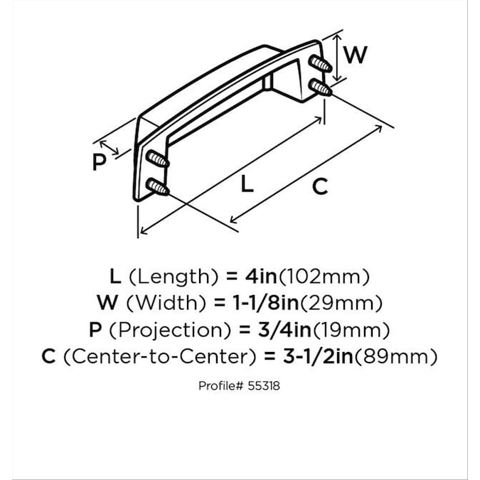 Design: 3-1/2 in (89 mm) center-to-center rectangular cup pull for a sleek and streamlined look.