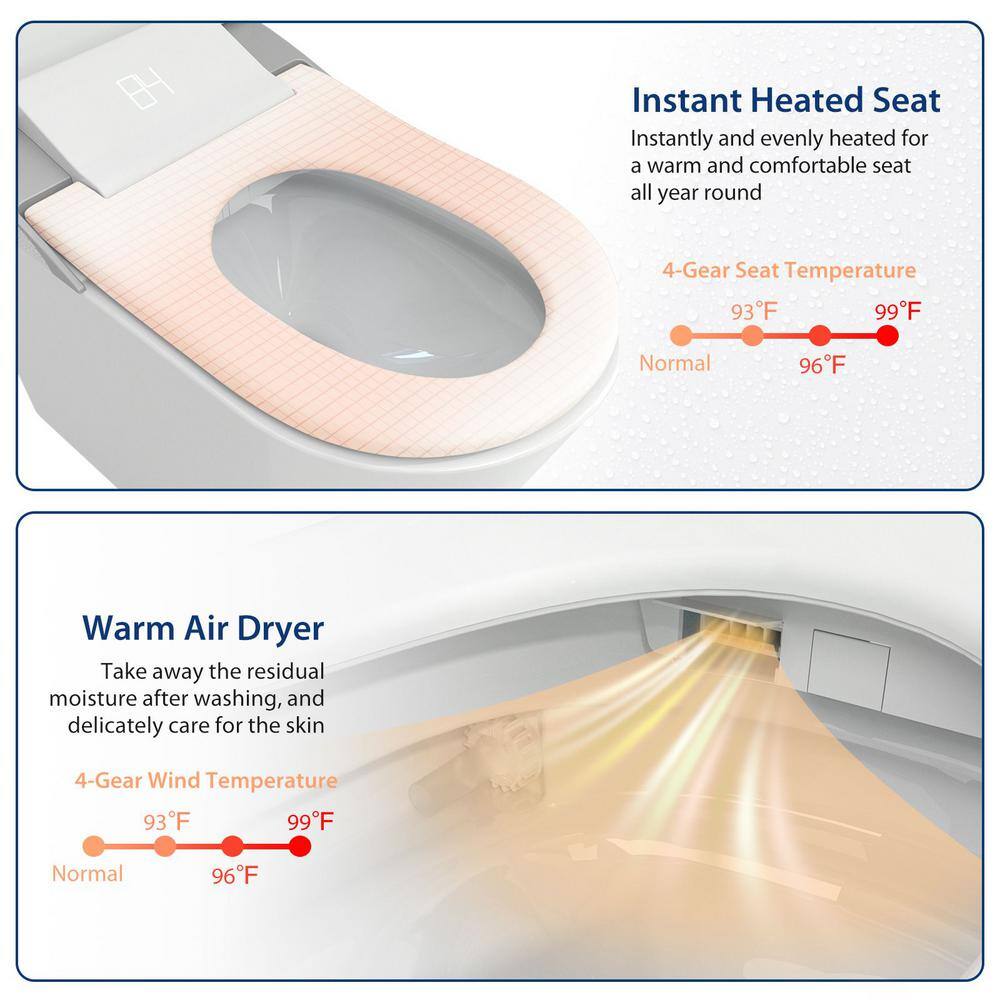 Heated Seat & Warm Wash: Ensures comfort with adjustable temperature settings.