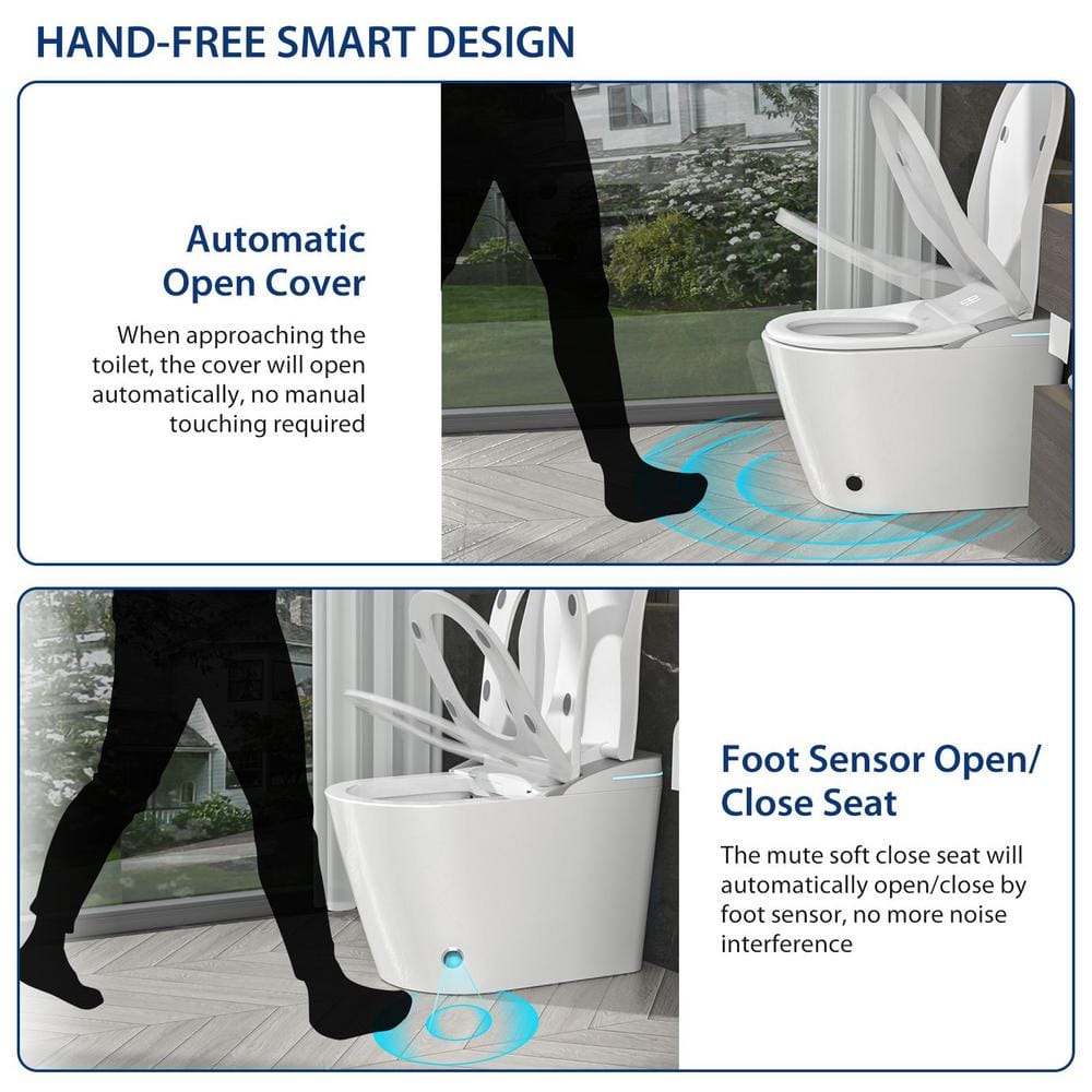 Experience luxury with the Amucolo 1-Piece Smart Bidet Toilet, combining cutting-edge technology with modern design. This elongated toilet features a heated seat, remote control operation, self-cleaning capabilities, and energy-efficient flushing, making it an essential addition to any contemporary bathroom. With user-friendly features like foot kick flush and a built-in night light, it ensures both comfort and convenience.