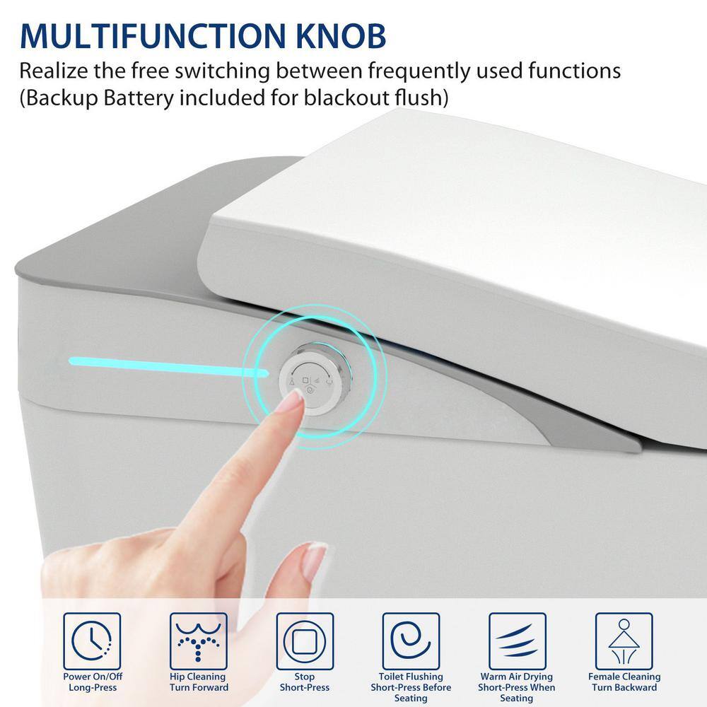 A: The toilet features a built-in backup battery that allows you to continue using the flush feature during a blackout.