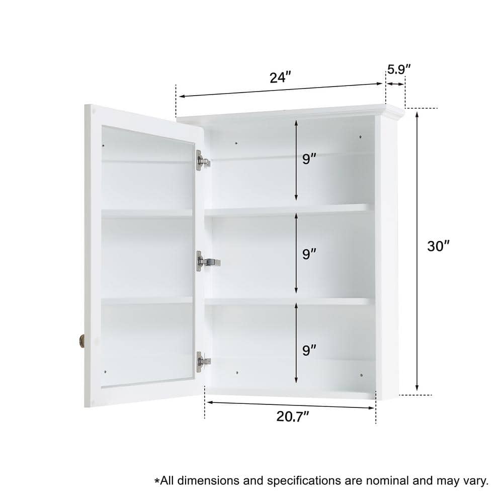24x30 White Solid Wood Soft Close Medicine Cabinet