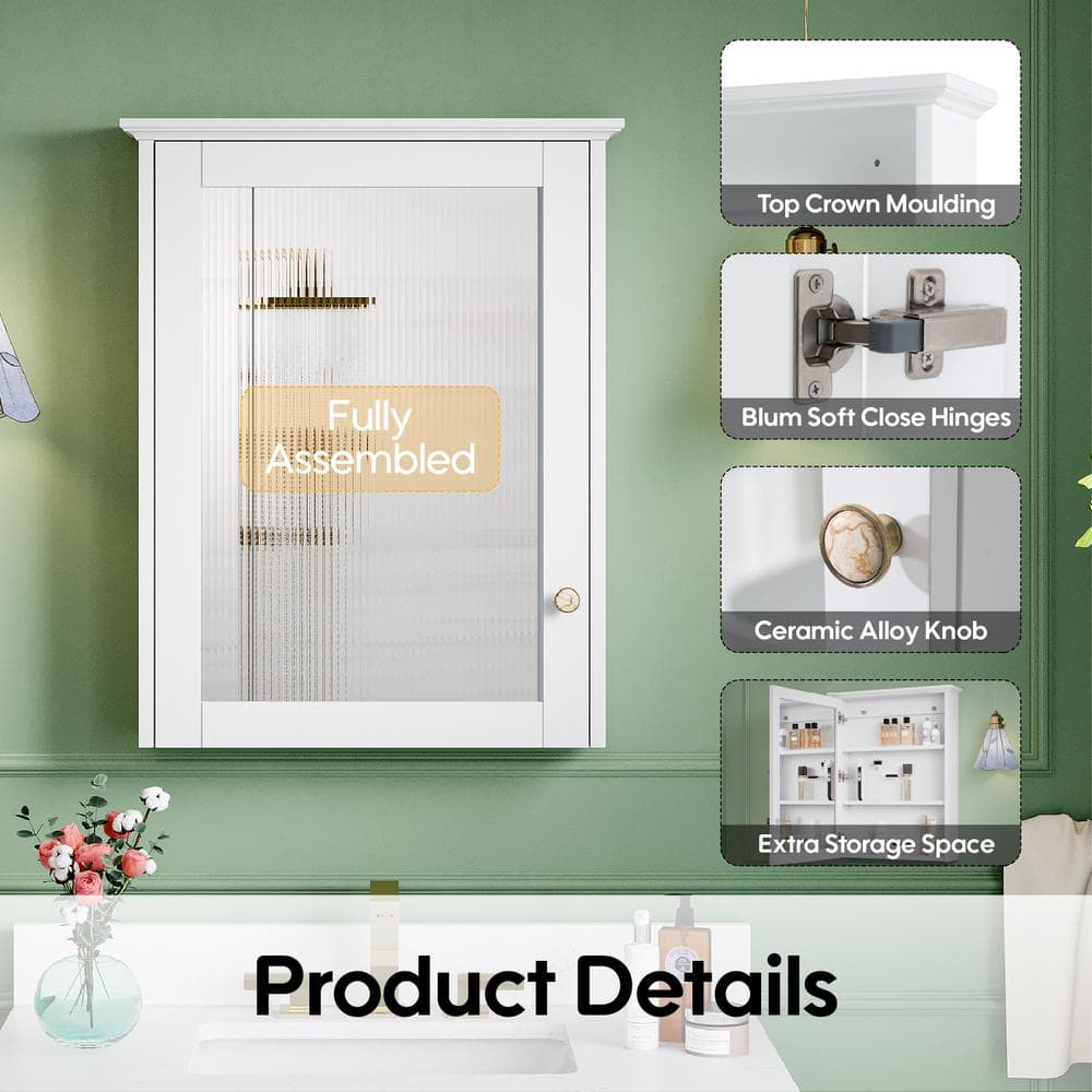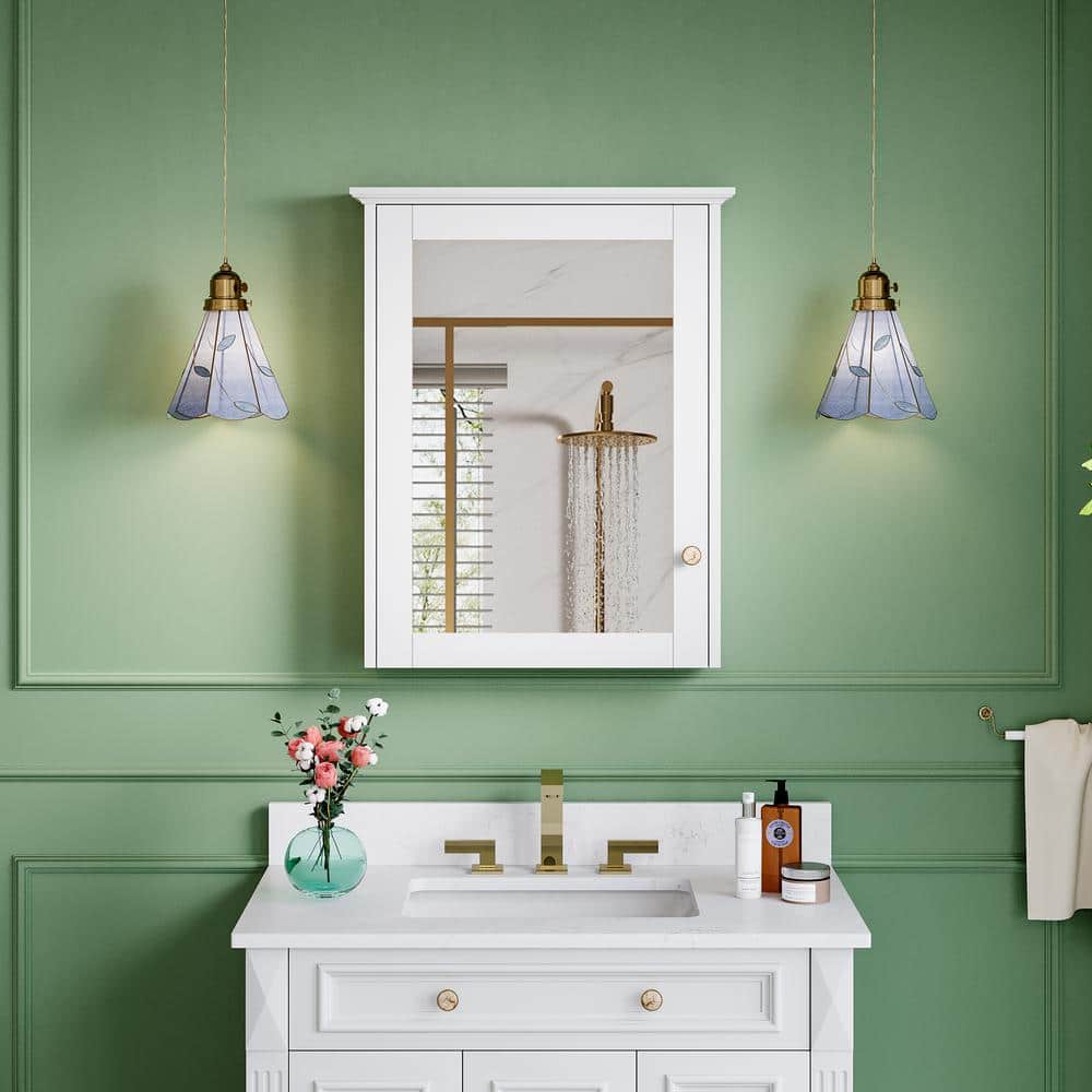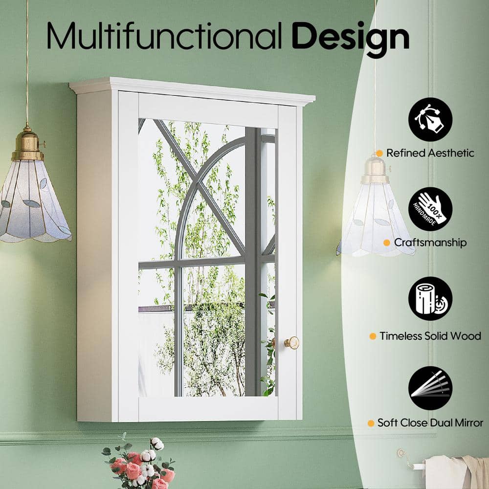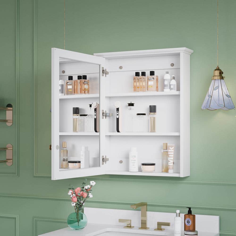 Transform your bathroom into a serene retreat with the ANGELES HOME medicine cabinet, where timeless elegance meets modern functionality. The stunning white solid wood frame is seamlessly paired with a crystal-clear, copper-free mirror, elevating both style and utility. Its soft-closing door gently conceals essentials, offering a clutter-free, tranquil ambience. This piece not only maximizes storage but adds a touch of luxury to your daily routine.