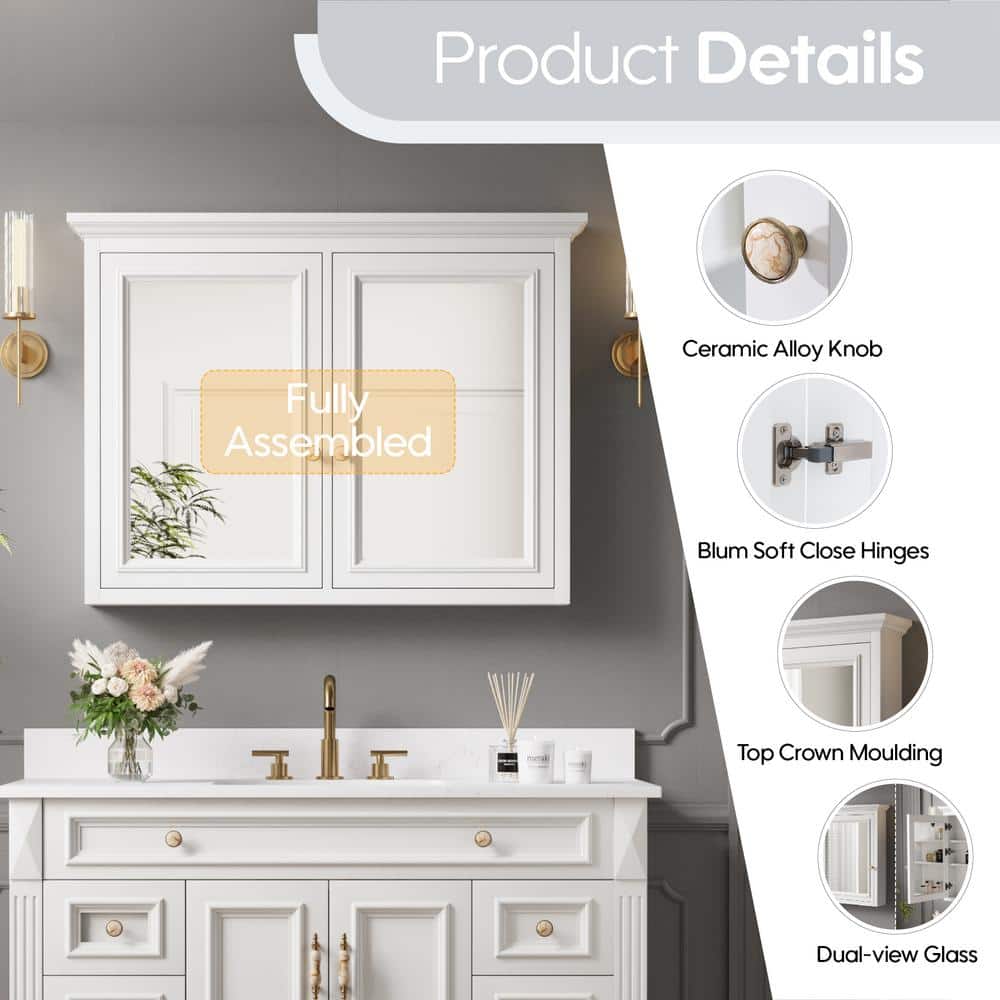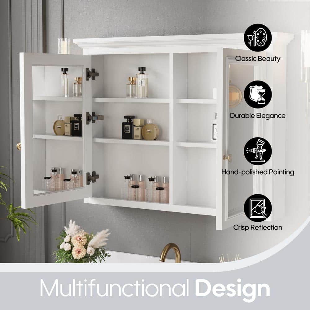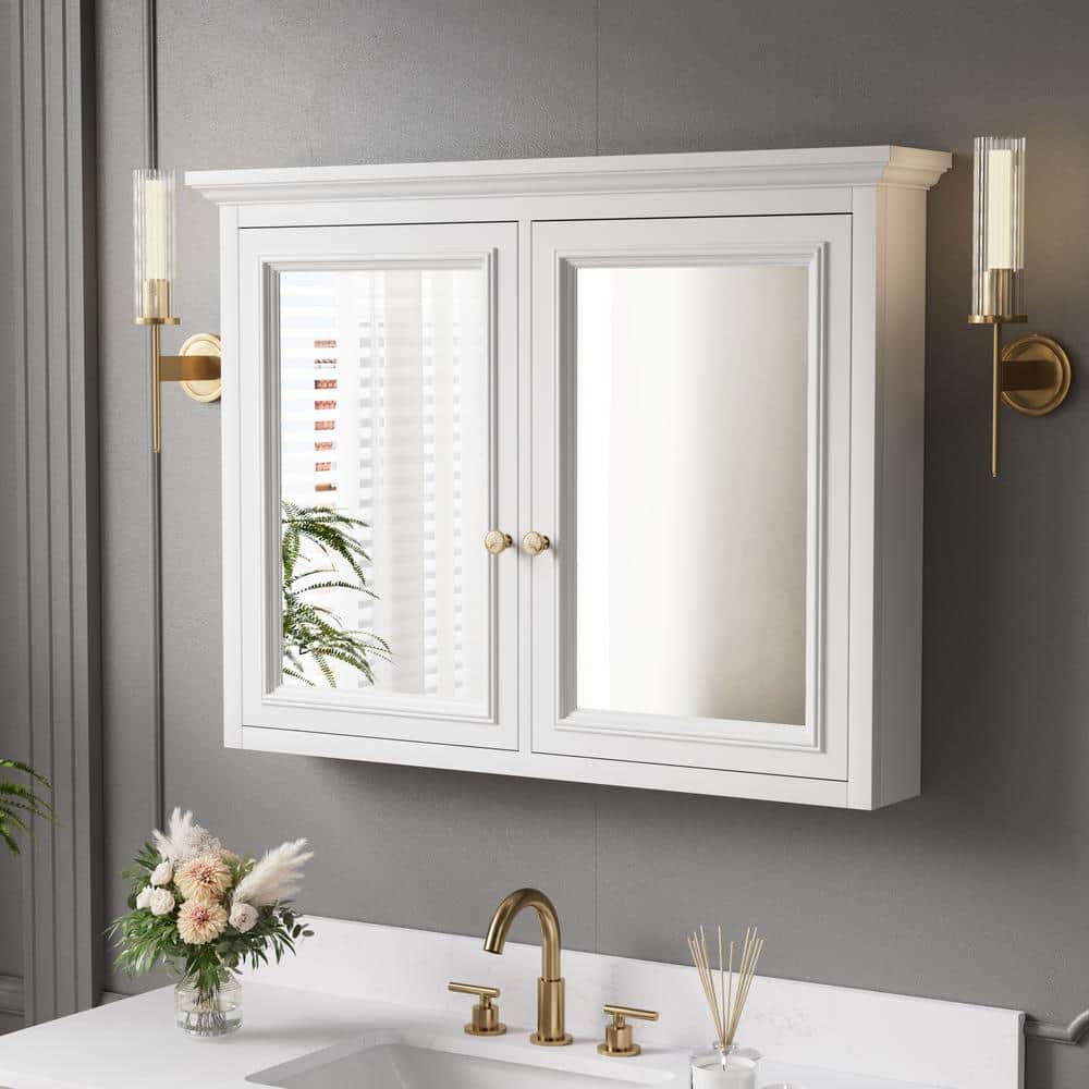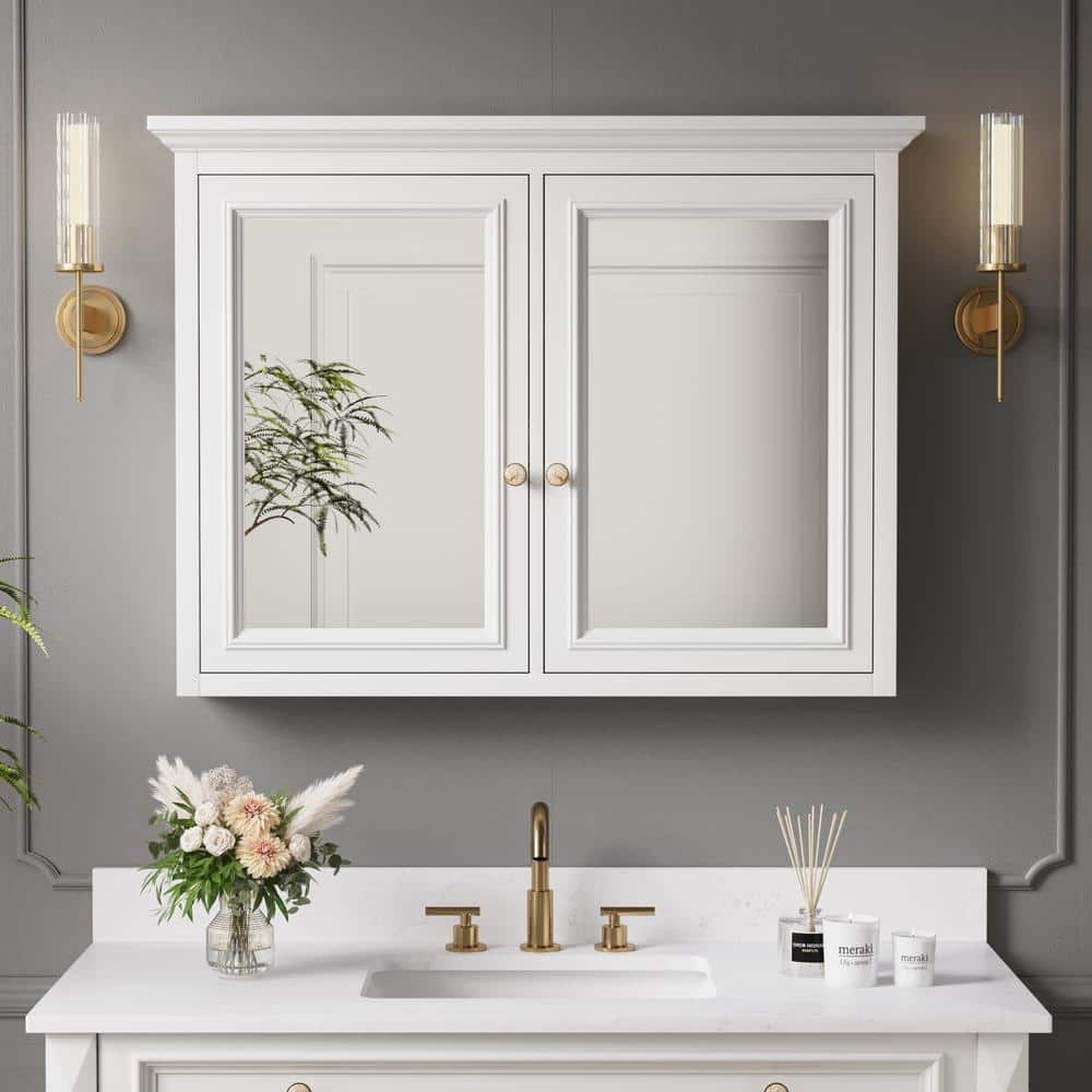 Elevate your bathroom with the ANGELES HOME Solid Wood Wall Mount Medicine Cabinet. Crafted from premium solid rubberwood, this cabinet ensures lasting durability and style. With its large mirrored doors and ample interior storage, it brings both elegance and practicality to your space.