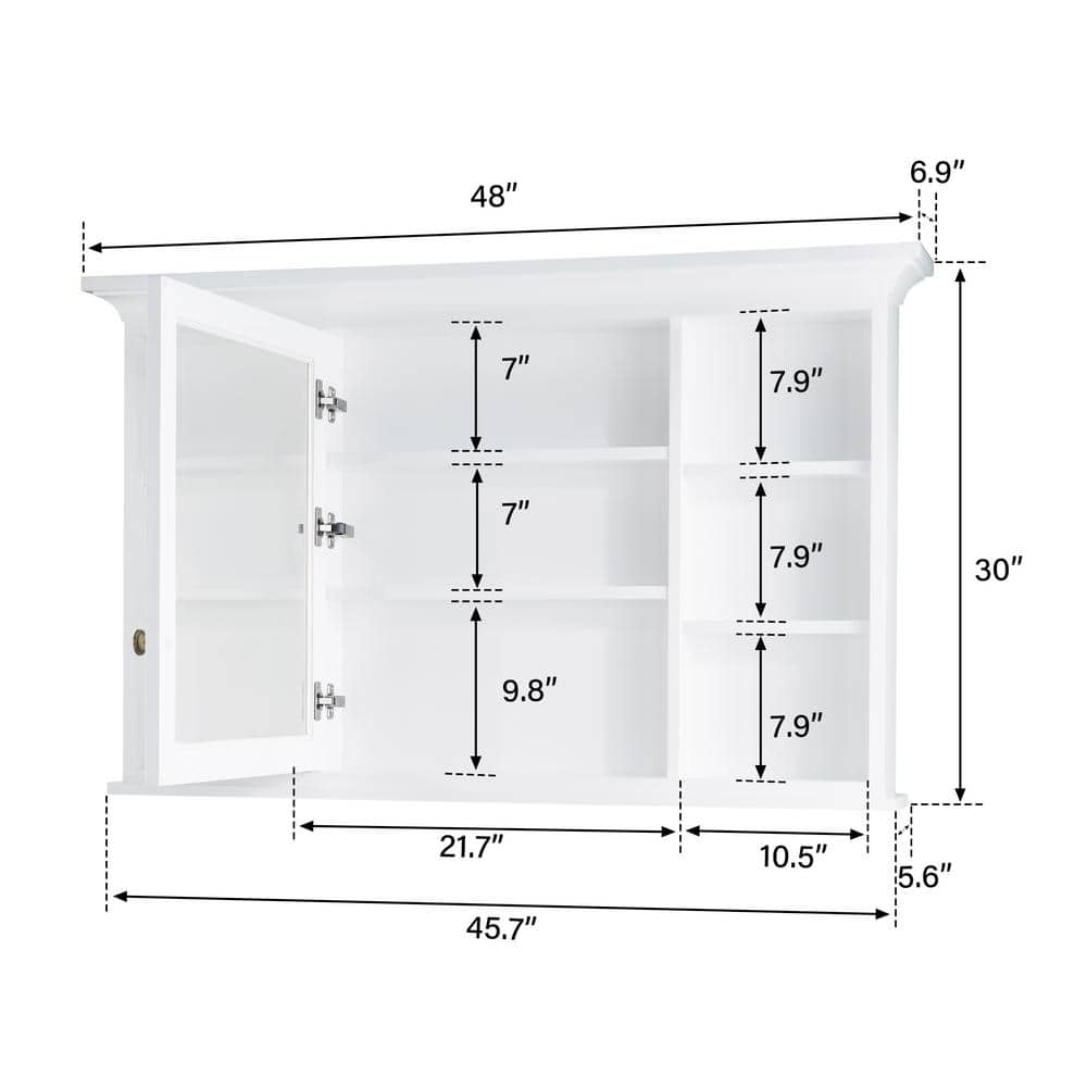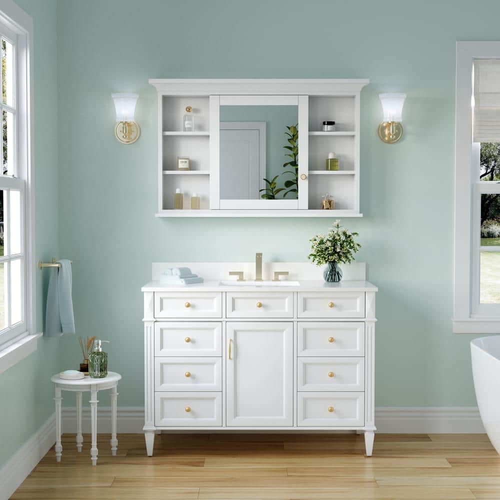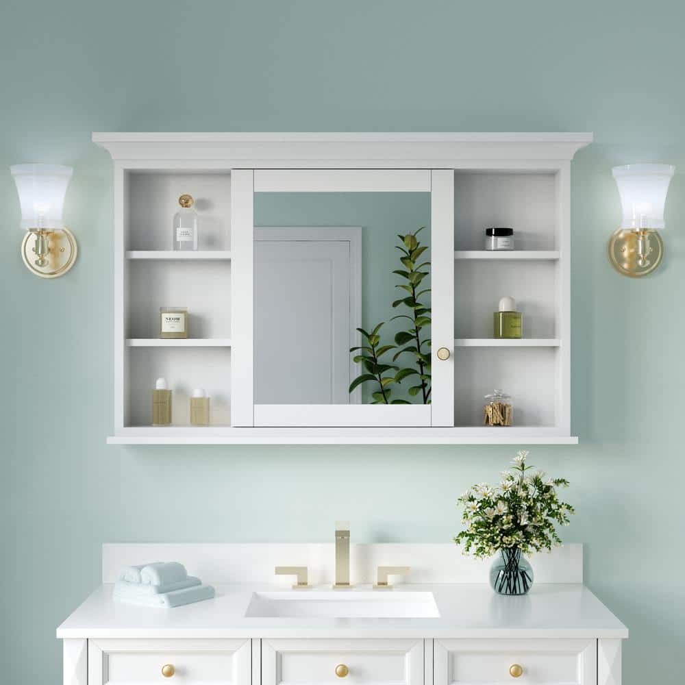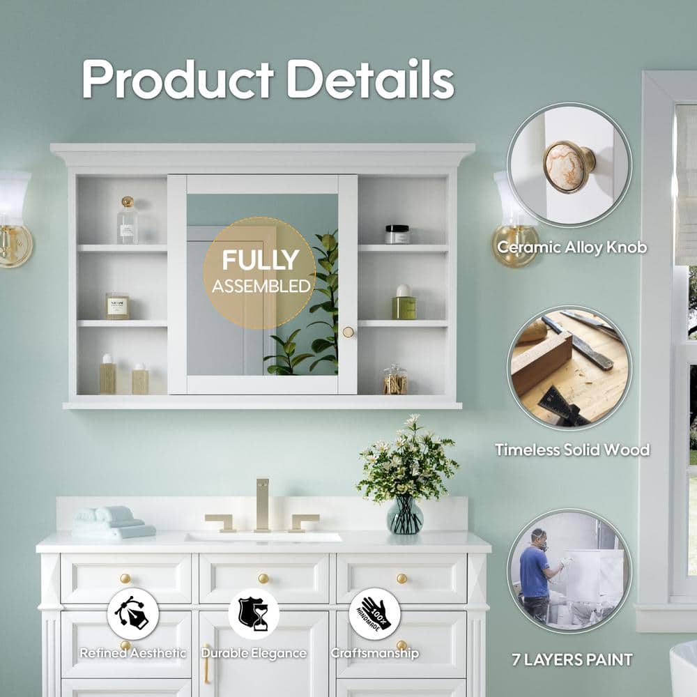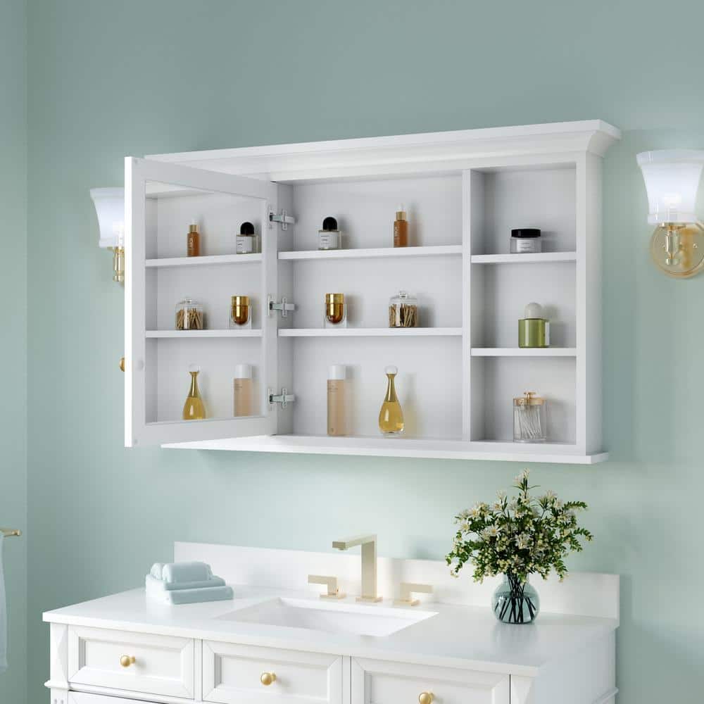 ANGELES HOME 48 in. W x 30 in. H Rectangular Solid Wood Frame Bathroom Medicine Cabinet with Mirror