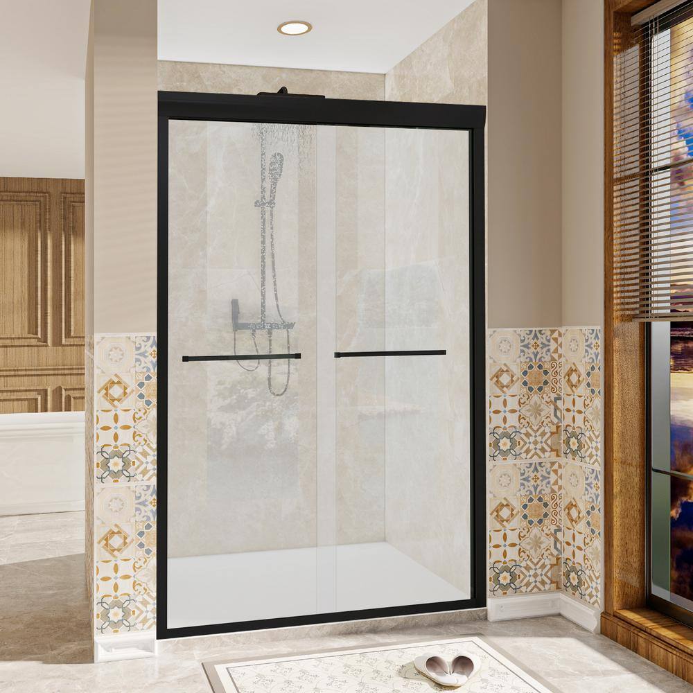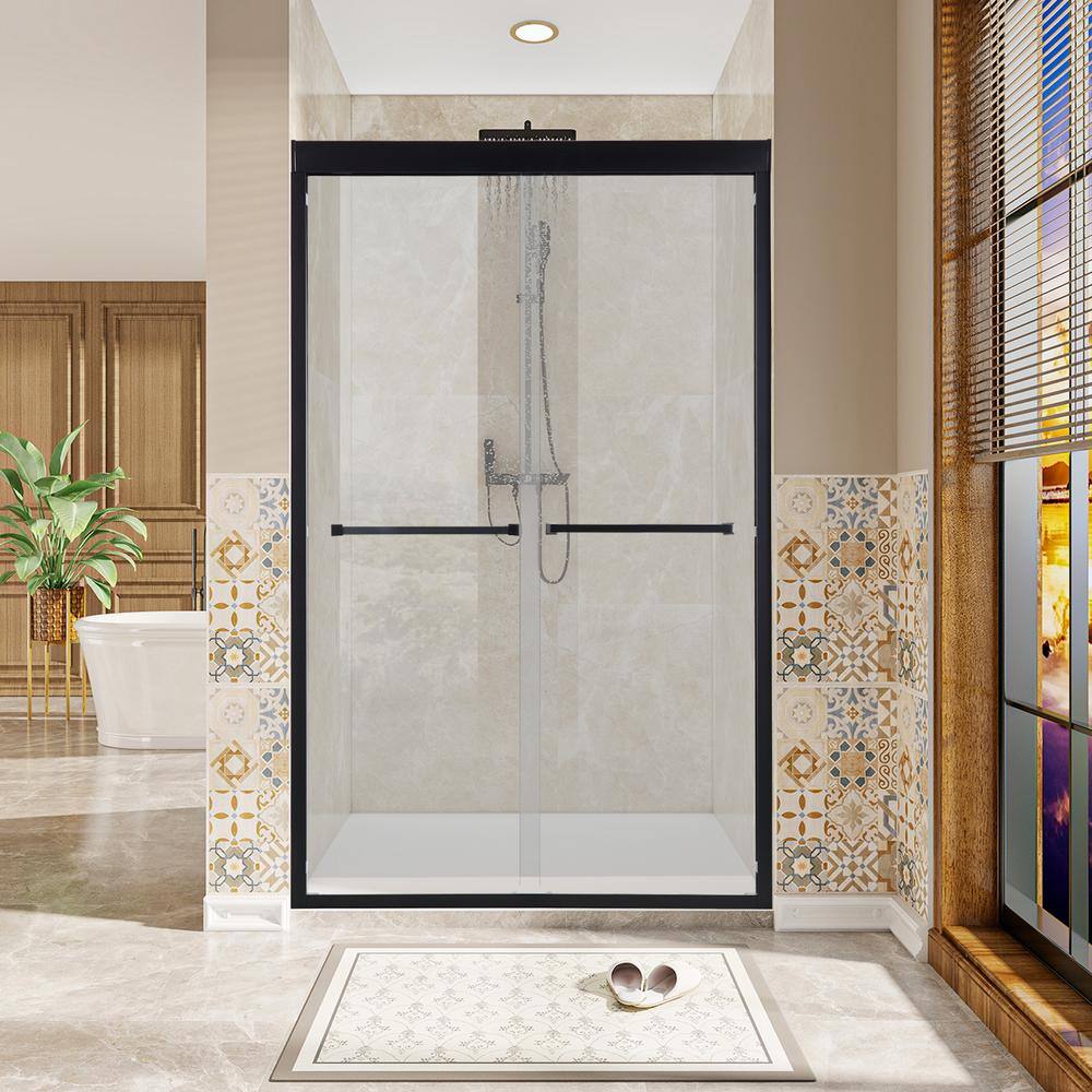 Elevate your bathroom's style and functionality with the ANGELES HOME Double Sliding Frameless Shower Door. Featuring a sleek matte black frame and clear certified glass, this elegant shower door enhances modern bathroom aesthetics while offering easy access and maintenance.