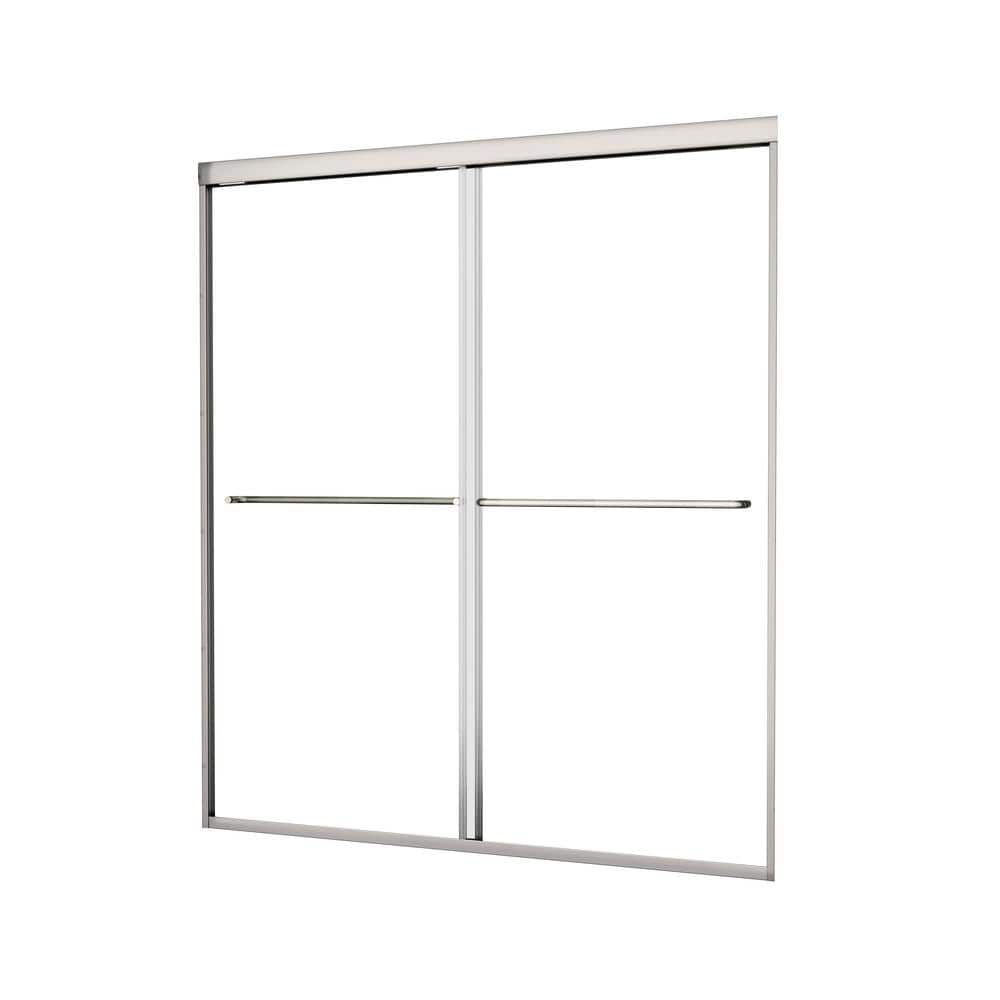 Enhance your bathroom with the functional elegance of the ANGELES HOME Bypass Double Sliding Shower Door. This stylish shower door features clear tempered glass with an easy-clean nano treatment, ensuring durability and effortless maintenance. Equipped with a chrome finish and a smooth sliding mechanism, it seamlessly integrates into any modern or traditional space.
