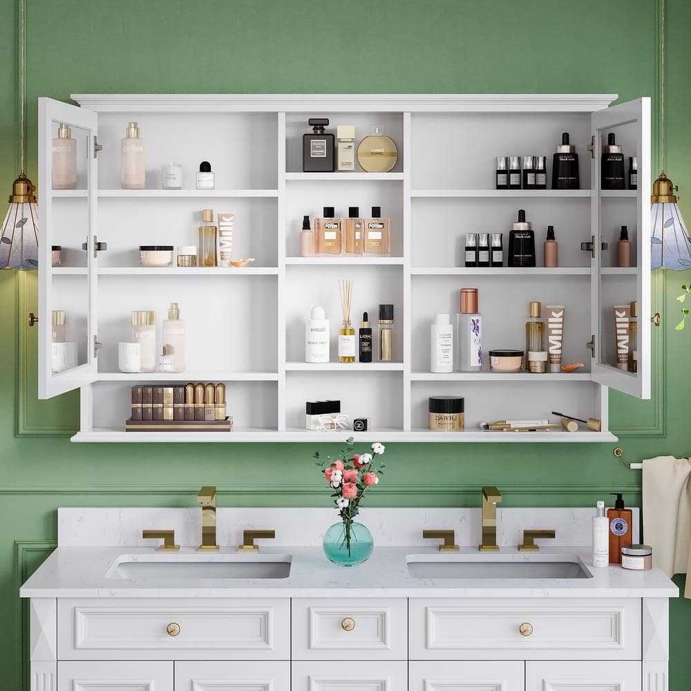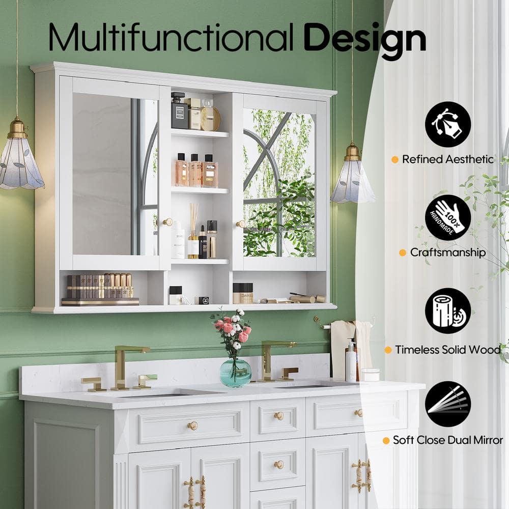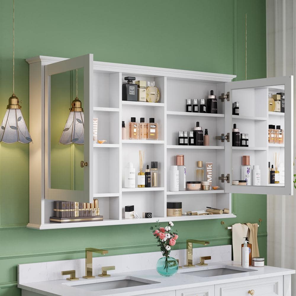 Transform your daily routine with this exquisite medicine cabinet, where practicality meets refined elegance. Its expansive, high-definition mirrored doors add light and a sense of openness to any bathroom. The soft-close hinges and lustrous high-gloss finish create a sophisticated sanctuary. Style it with luxury bath accessories for a polished, hotel-inspired look, making it a must-have in your serene space.