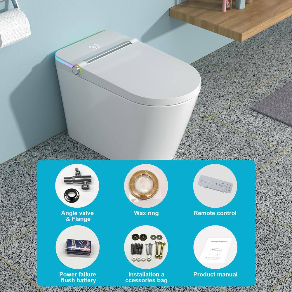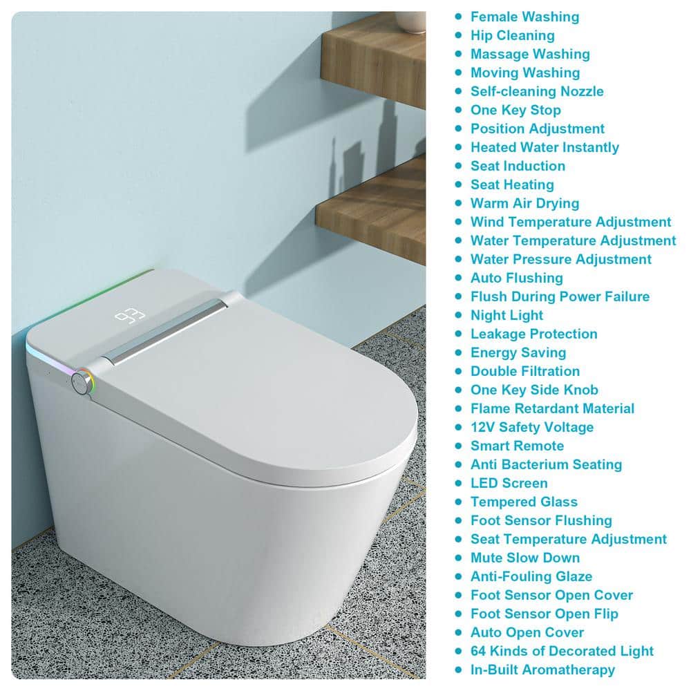 Elevate your bathroom experience with the ANGELES HOME Elongated Smart Bidet Toilet. Featuring advanced technology such as heated seating, automatic flushing, and a soothing LED night light, this smart toilet transforms daily routines into moments of luxury. Ideal for modern homes, it provides unrivaled comfort and functionality.