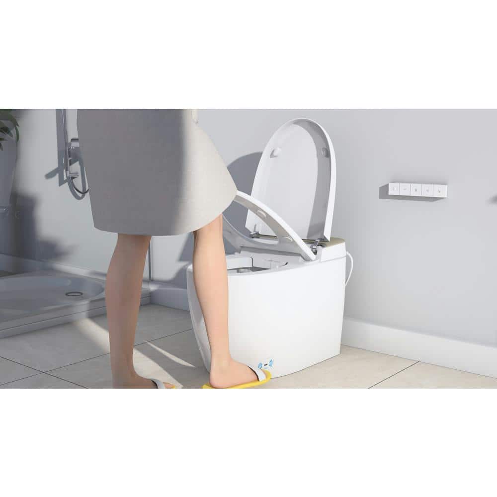 The ANGELES HOME Elongated Smart Toilet elevates bathroom experiences with its futuristic features. Enjoy the convenience of auto open/close lids, soothing heated seats, and an innovative foot sensor. This high-tech toilet combines luxury and hygiene, offering customizable bidet functions and water-saving technology.