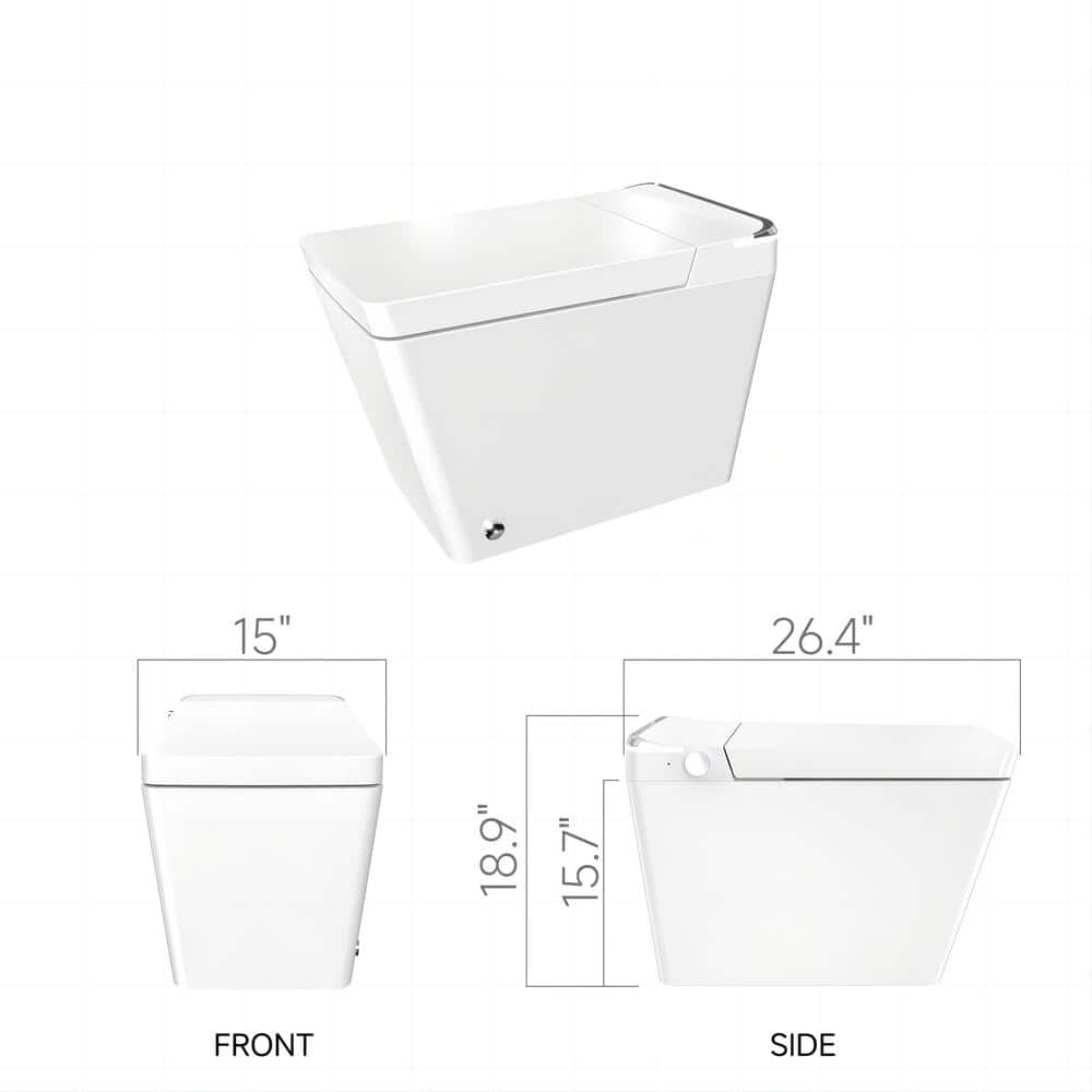 Elevate your bathroom with the ANGELES HOME Rectangular Bidet Toilet, featuring a sophisticated auto open/close lid and integrated night light. This smart toilet provides a tailored hygienic experience with adjustable water pressure, temperature, and multiple wash modes for ultimate comfort and convenience.