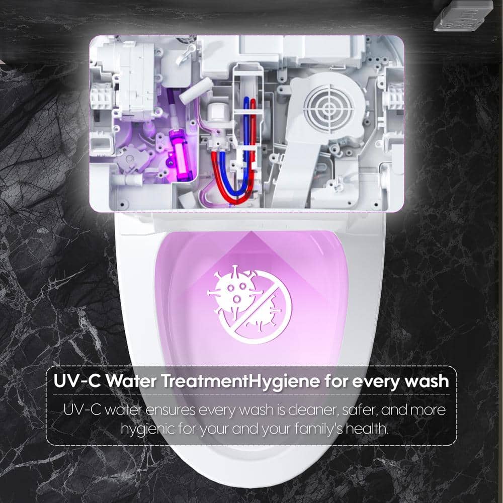 • Hygienic Technology: Rear and front cleansing options with adjustable oscillating warm water, plus antibacterial seat cover.
