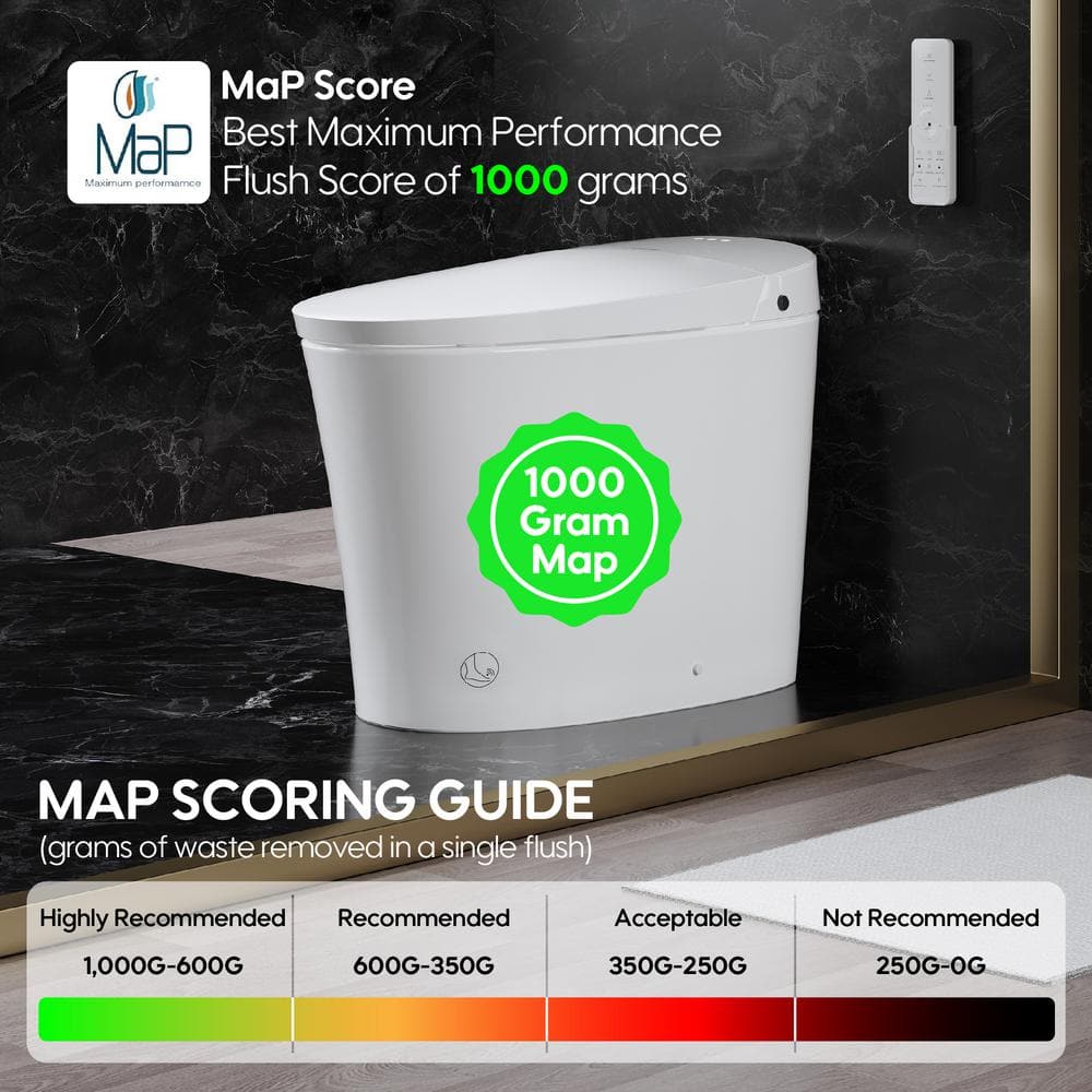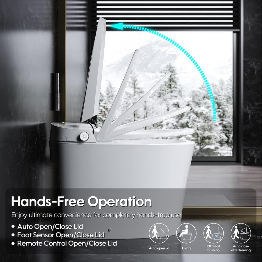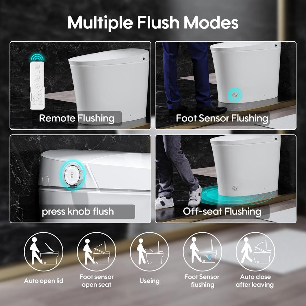 • Advanced Features: Auto open/close, auto flush, remote control and foot sensor for hands-free operation.
