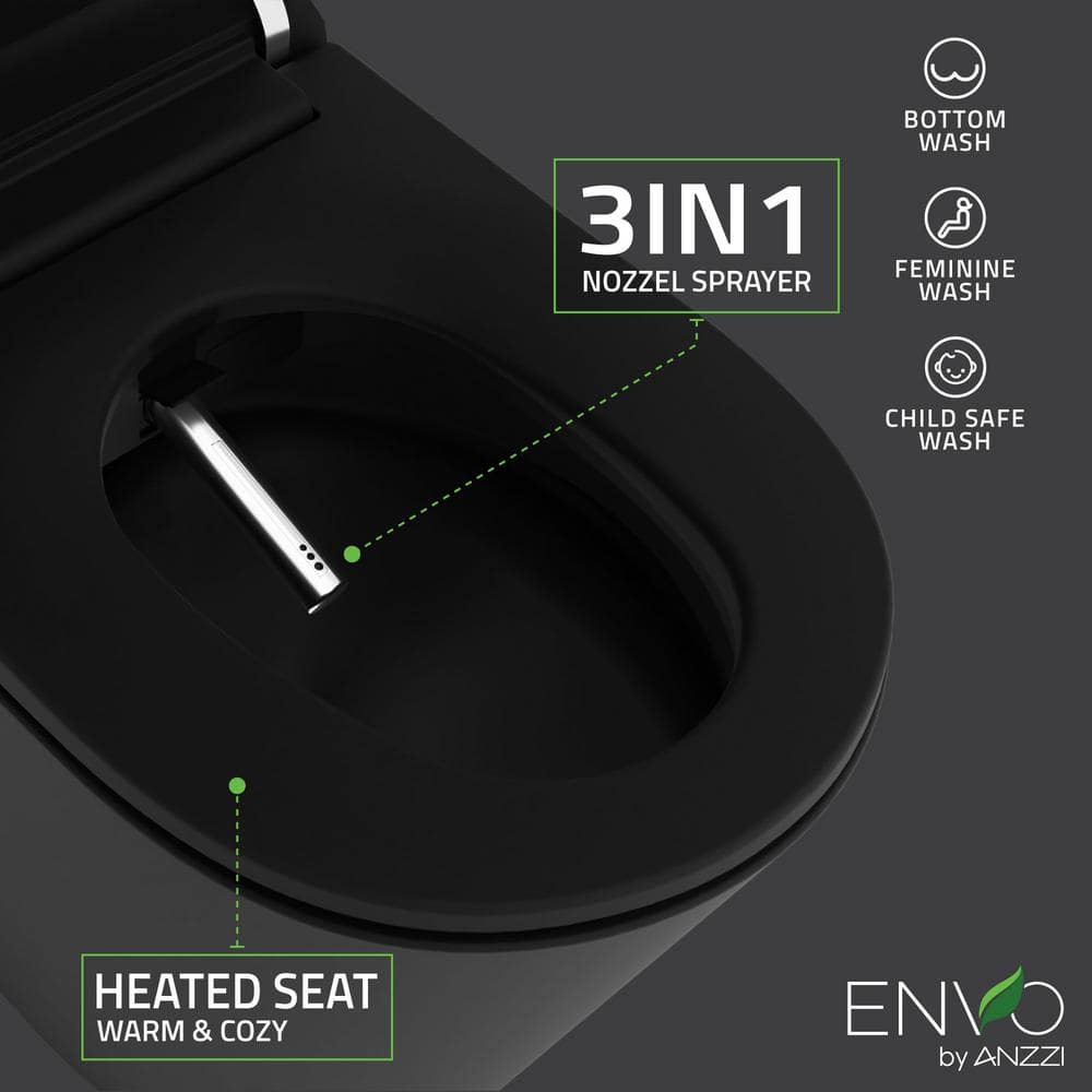 ANZZI ENVO Resonance Smart Bidet Toilet in Matte Black with Voice and Wifi Control