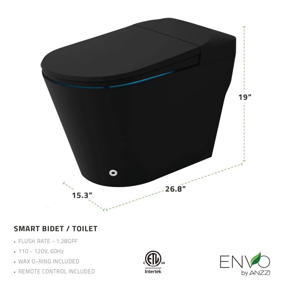 Transform your bathroom experience with the ANZZI ENVO Resonance Smart Bidet Toilet. Featuring voice and Wi-Fi control, automatic lid and seat operation, and customizable comfort settings, this sleek matte black toilet is the epitome of modern luxury and eco-efficiency.