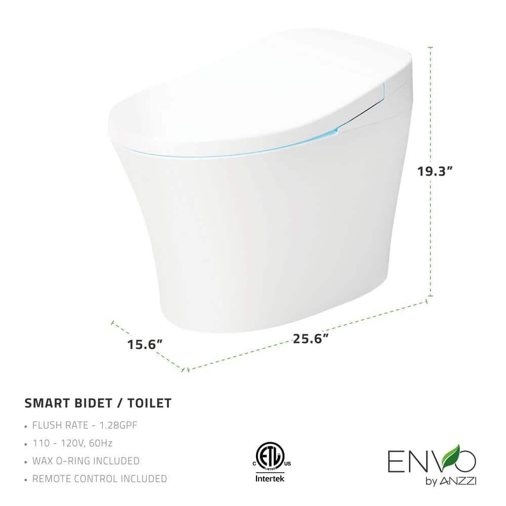 ANZZI ENVO Shroud 1.28 GPF Smart Bidet Toilet with Auto Flush and Heated Seat