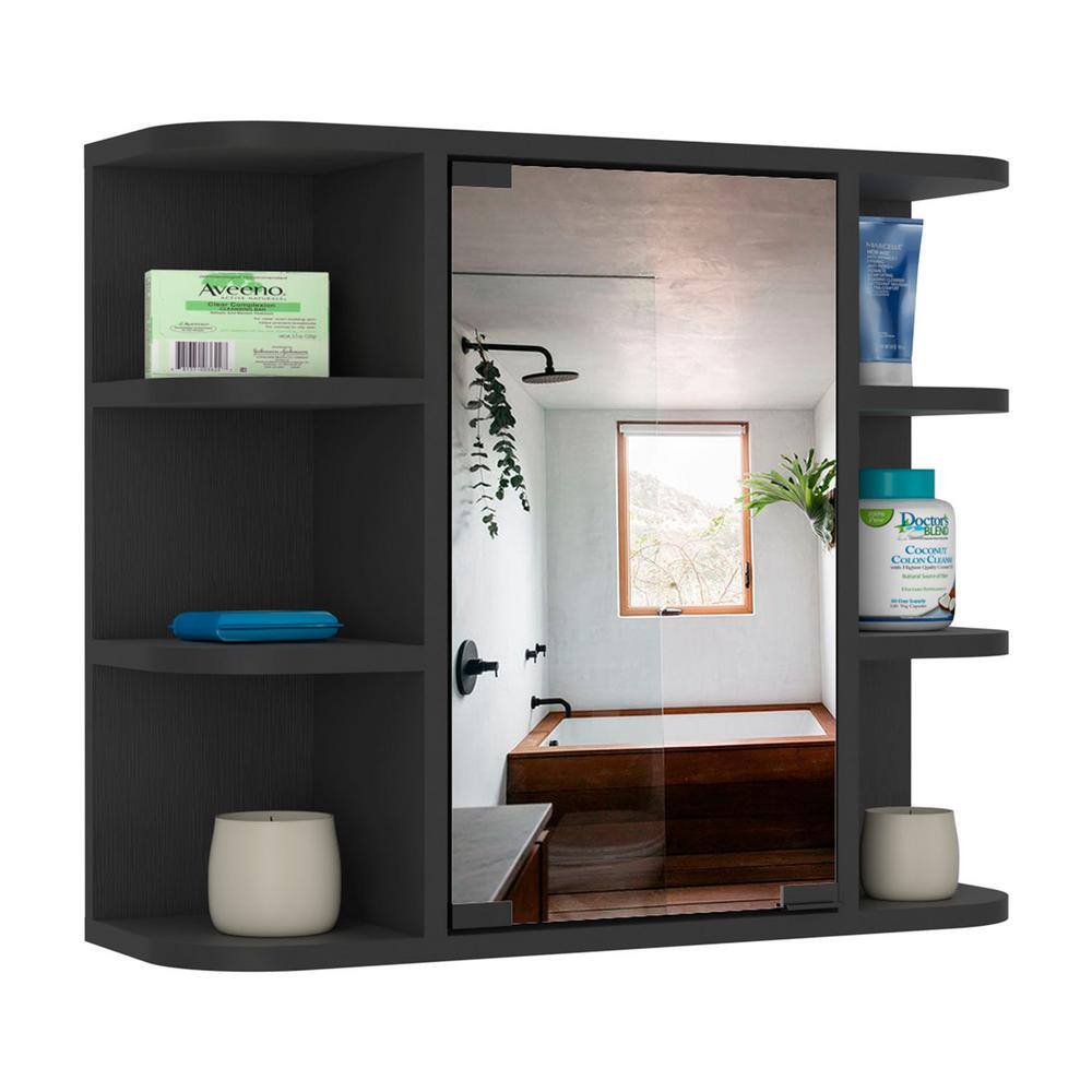 The Aoibox Black Wengue Medicine Cabinet transforms ordinary bathroom walls into sophisticated showcases of style. Its sleek mirror and multiple shelves play dual roles of functionality and minimalist beauty, enhancing any decor it graces. For a creative touch, use its open shelves to display small decorative items or mood-enhancing aromatherapy diffusers. Essential for both utility and aesthetic, this piece completes the luxurious bathroom dream.