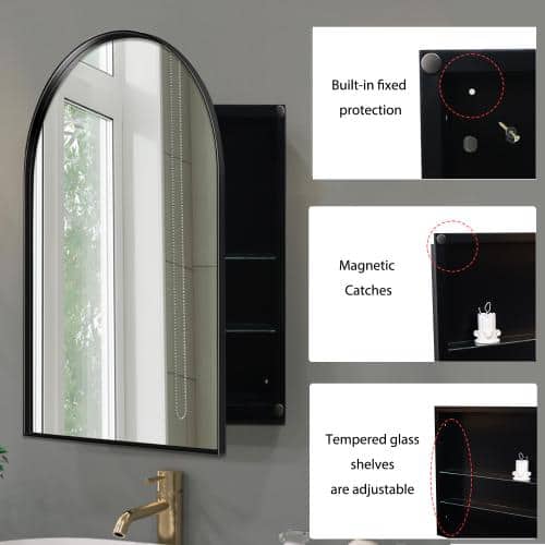 Upgrade your bathroom with the Aoibox 24x36 Arched Metal Medicine Cabinet. Designed with a sleek matte black metal frame and equipped with fog-proof technology, this cabinet combines style and function. Its adjustable shelves and dual installation options make it a versatile asset to any bathroom.