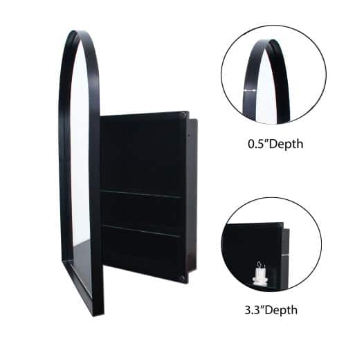 Transform your bathroom into an oasis of sophistication with the Aoibox Arched Metal Medicine Cabinet. Its sleek matte black frame and fog-free glass add a touch of luxury while maintaining a pristine reflection, capturing both beauty and utility. Use it to elegantly frame your bathroom essentials, and let the adjustable shelving tailor storage to your whims. This cabinet isn’t just furniture; it’s a defining piece of stylish living.